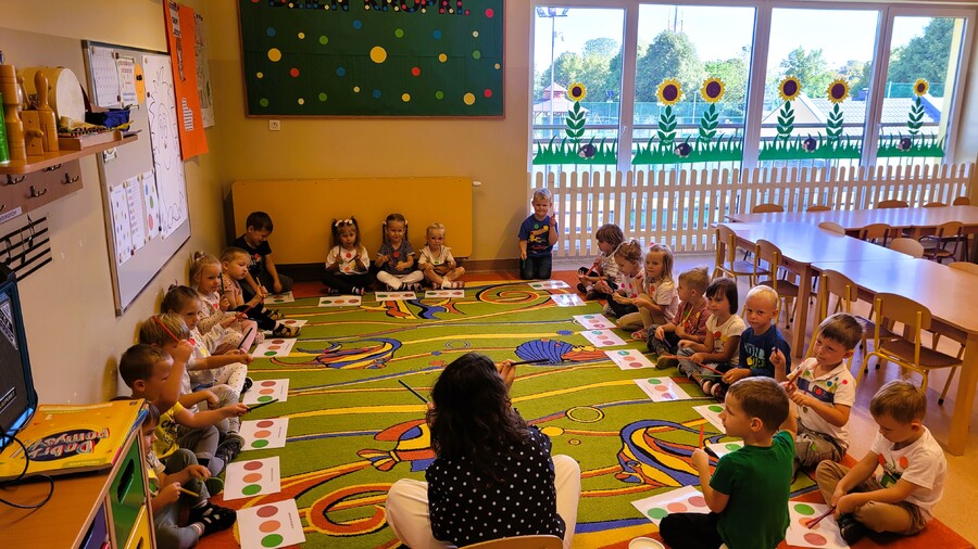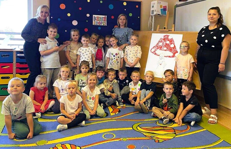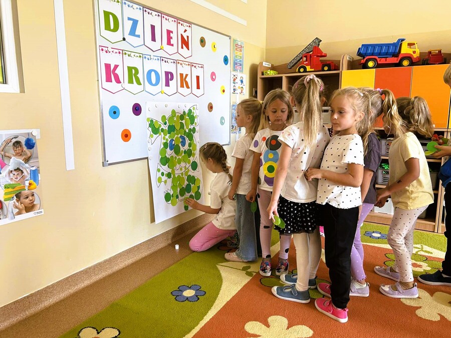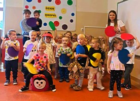 Wokół samej „kropki” – bohaterki dzisiejszego dnia – "kręciły się" dziś tańce, piosenki i zajęcia plastyczno – techniczne. Każdy ochoczo kropkował wspólne projekty oraz brał udział w kropkowych zabawach.