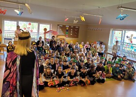 Podczas spotkania dzieci obejrzały inscenizację, z której dowiedziały się skąd na świecie biorą się motyle, wysłuchały motylich wierszy, obejrzały „Taniec Motyla” i uczestniczyły w zabawie ruchowej. Na zakończenie obchodów tego barwnego dnia, każdy przedszkolak otrzymał symbolicznego motylka.