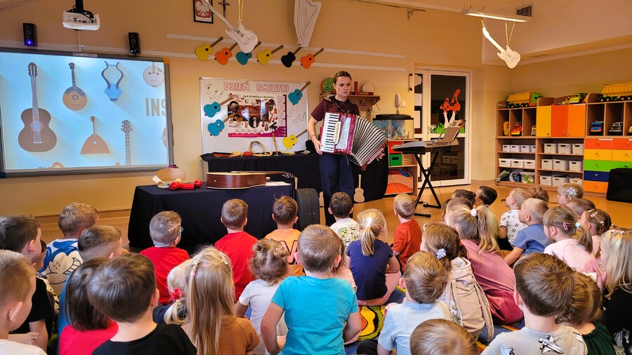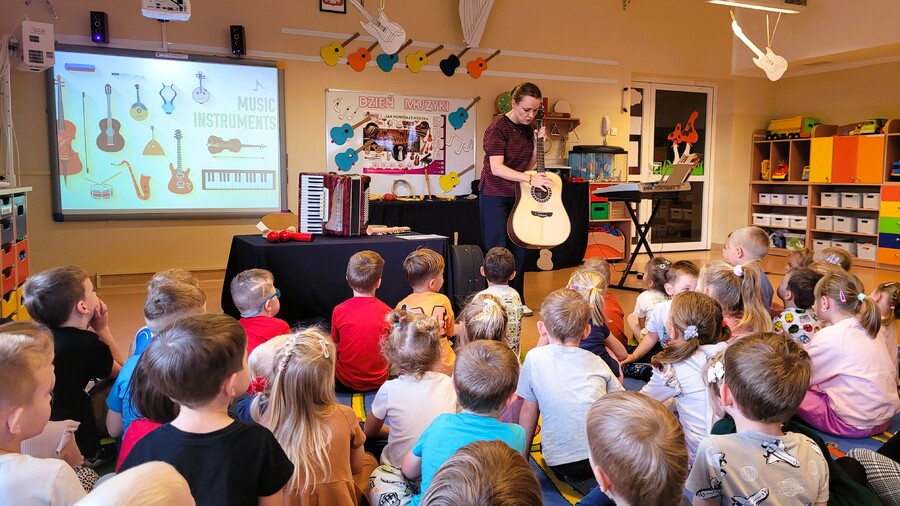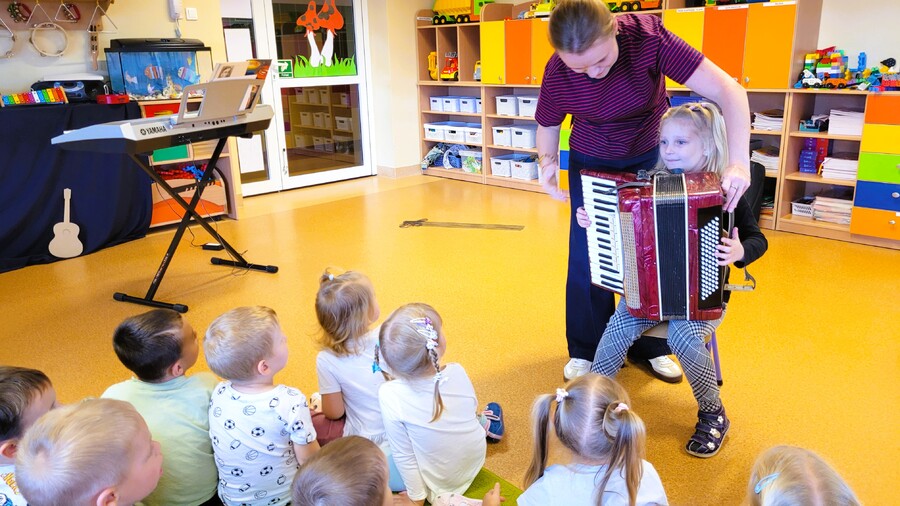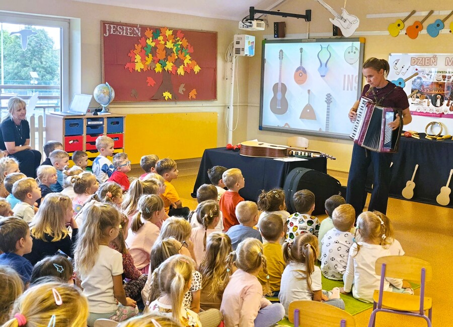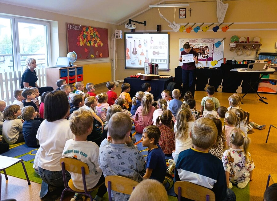 Przedszkolaki poznały namacalnie różne instrumenty oraz miały okazję na żywo usłyszeć jakie wydają dźwięki.