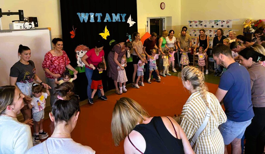 Kierownik placówki – pani Mariola Bednarek przekazała rodzicom najistotniejsze informacje dotyczące pracy Przedszkola w Trzcinicy. Po części informacyjnej przyszedł czas na zajęcia integracyjne i dobrą zabawę. Czas zabawy został podzielony na działania wspólne i indywidualne. Dzieci wysłuchały bajki, a podczas czasu zabawy uczestniczyły wraz z rodzicami we wspólnym tańcu oraz poznały mini techniki masażu relaksacyjnego. Największą radość sprawił jednak wszystkim czas z przedszkolnymi zabawkami.