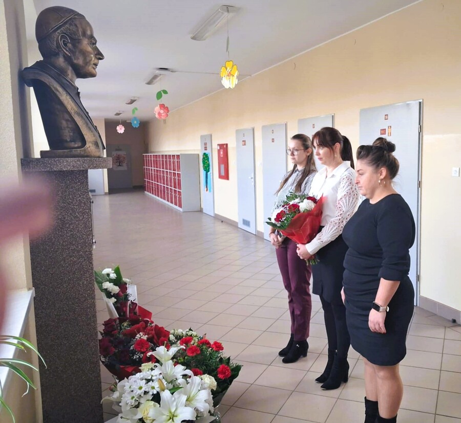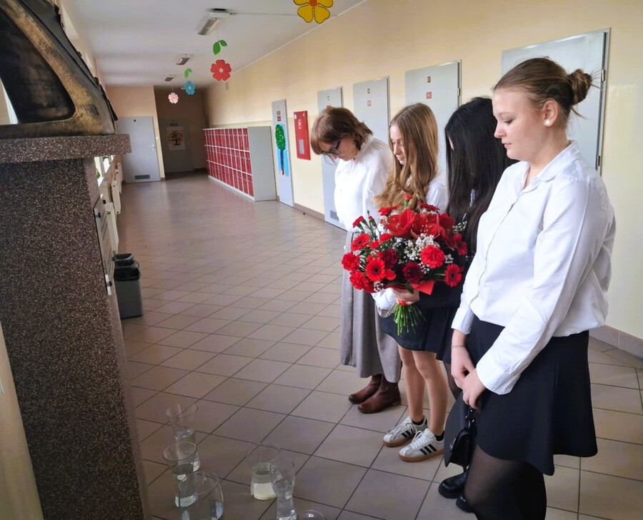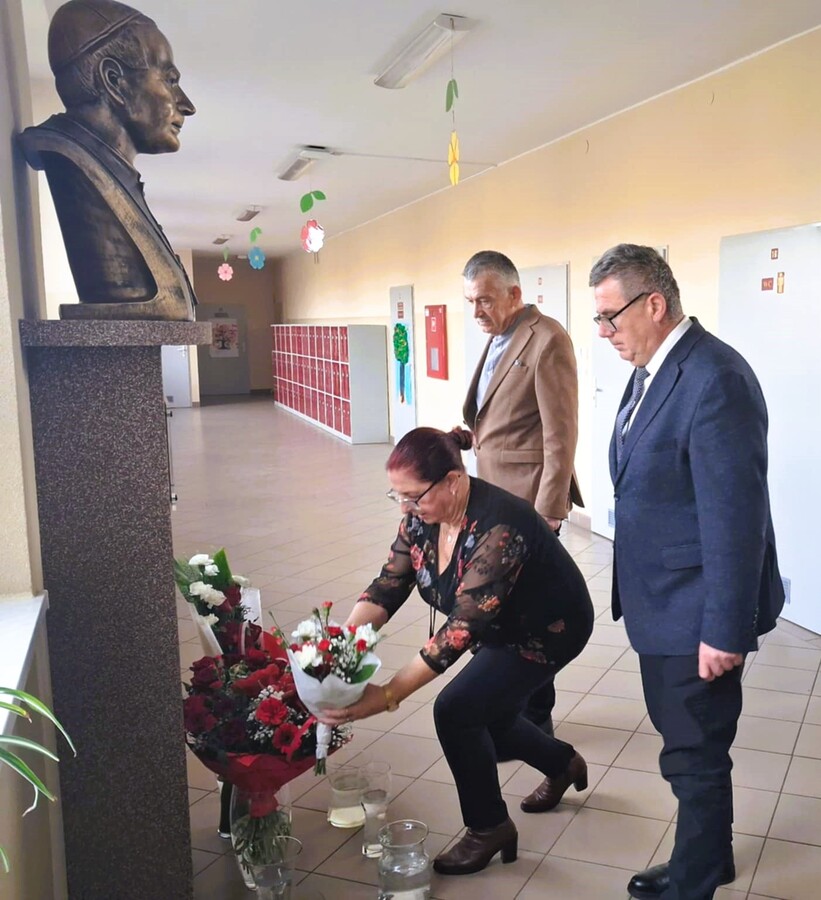 Kolejnym punktem obchodów było złożenie kwiatów przez przybyłych gości i delegacje: przedstawicieli Gminy Trzcinica, Radnych Gminnych, przedstawicieli Rady Rodziców szkoły i przedszkola, dyrektor Gminnej Biblioteki Publicznej w Trzcinicy oraz dyrektorów zaprzyjaźnionych szkół z Lasek i Opatowa wraz z delegacjami.