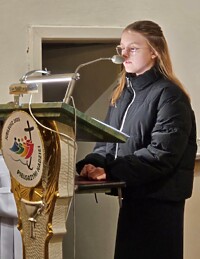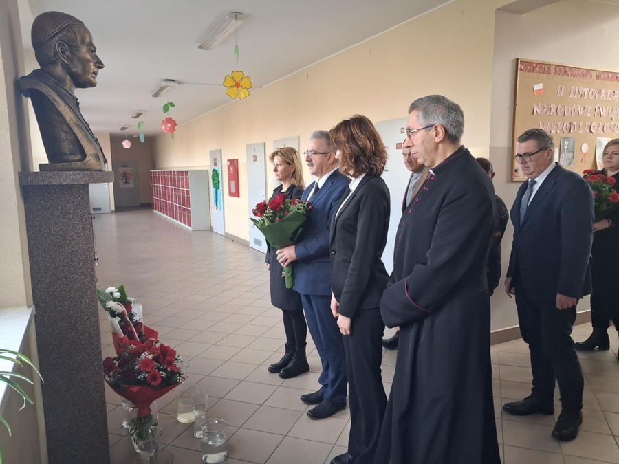 Na zakończenie uroczystości głos zabrali zaproszeni goście. Ksiądz kanonik Grzegorz Mituła odniósł się do postaci Patrona szkoły wyrażając swoją radość z duchowej opieki nad naszą szkołą tak wyjątkowej osoby. Sekretarz gminy Trzcinica, pani Aleksandra Fusek przekazała gratulacje i życzenia od wójta gminy Trzcinica pana Grzegorza Hadzika.