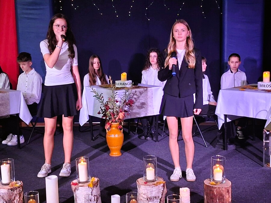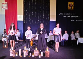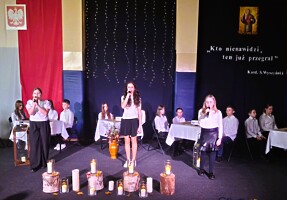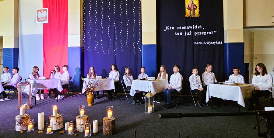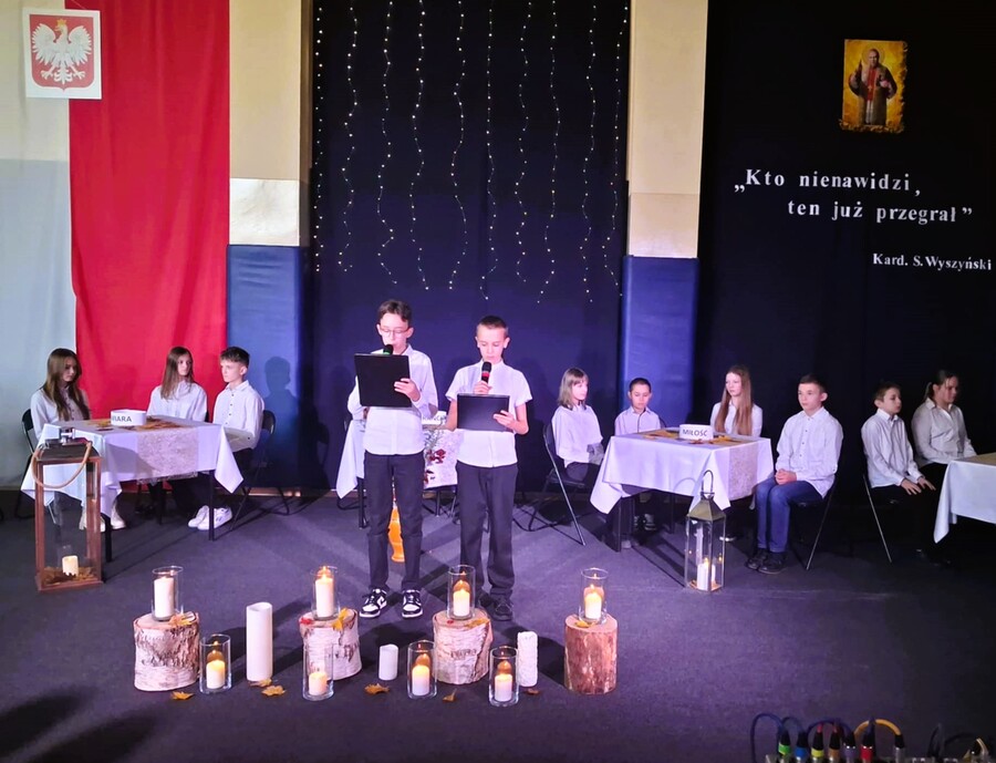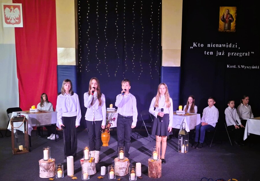 Po części oficjalnej, wszystkich świętujących w świat wartości, które towarzyszyły bł. Kard. Stefanowi Wyszyńskiemu, zabrali uczniowie klasy VI w montażu słowno-muzycznym przygotowanym pod kierunkiem pani Agnieszki Podejmy-Wróblewskiej oraz pani Aliny Lenort.