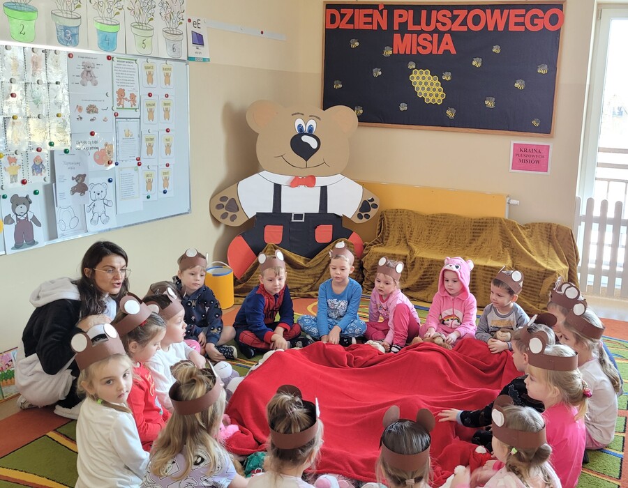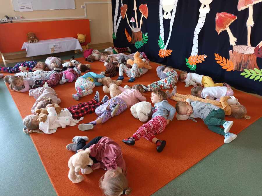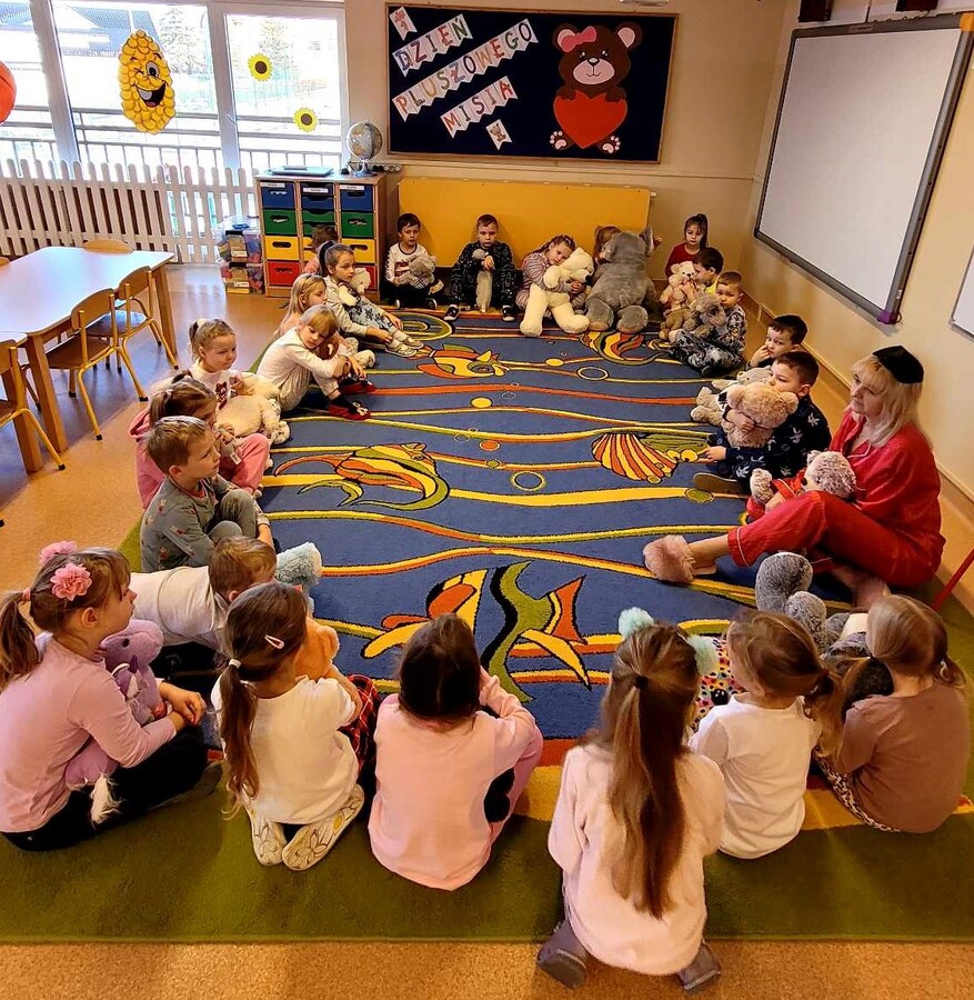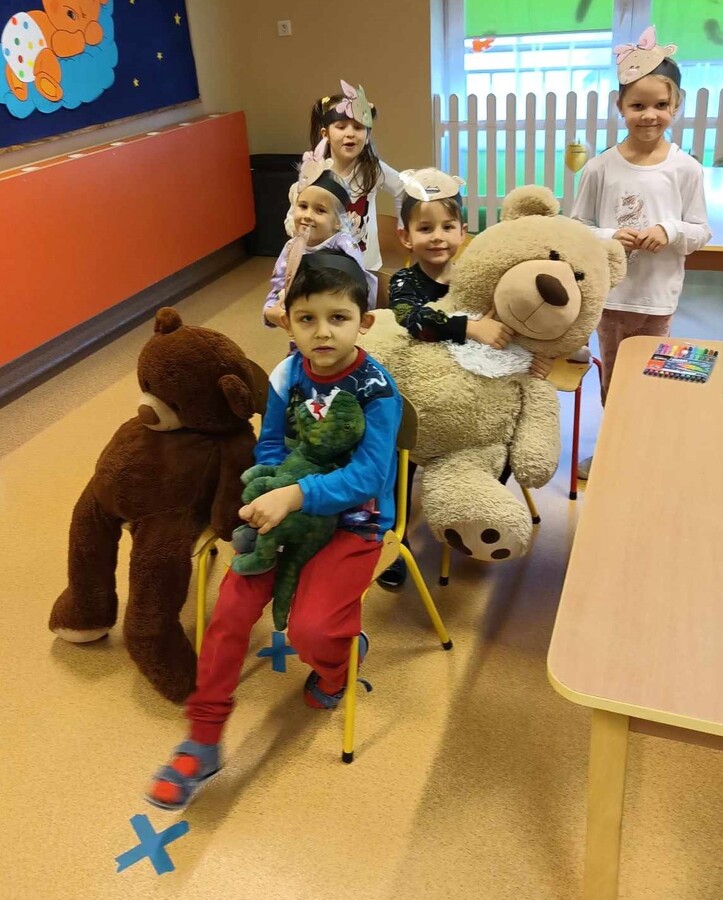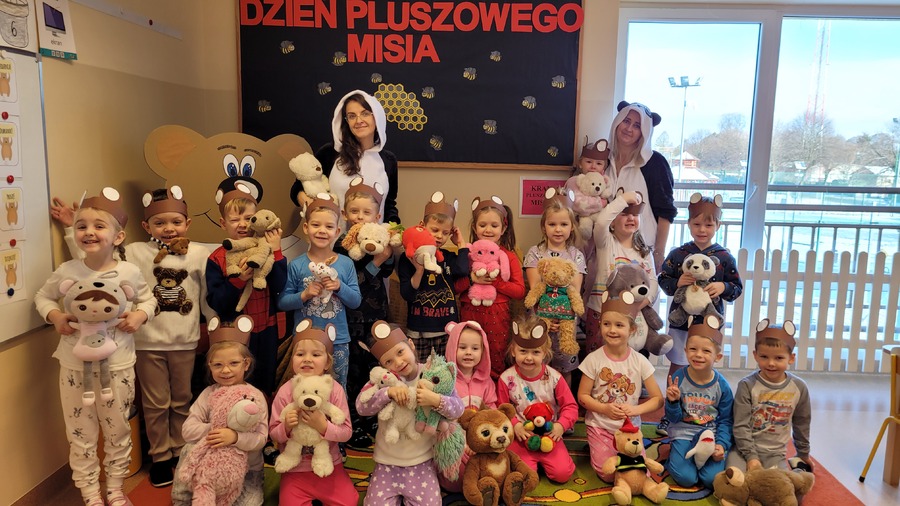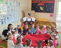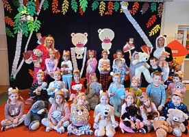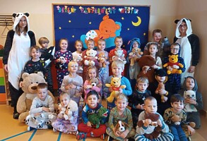 27 listopada przedszkolaki świętowały Dzień Pluszowego Misia. Oczywiście tego dnia w przedszkolu zagościły różnorodne misie i małe, i duże te zupełnie nowe i te, które towarzyszom dzieciom od kilku lat. Ponieważ misiowe maskotki najczęściej kojarzą się dzieciom z przytulaniem przed spaniem, tego dnia urządzono również swoiste piżama party. Tak więc wystrojeni w piżamy z misiami w rękach, zarówno przedszkolaki jak i nauczyciele uczestniczyli w niecodziennych zajęciach. W salach przygotowana została sceneria, w której królowały kąciki tematyczne. Można było poznać historię powstania pluszowego misia czy przypomnieć sobie misiowych bohaterów bajkowych. Były również zagadki i ciekawostki przyrodnicze o niedźwiedziach - te wzbudzały zainteresowanie zwłaszcza tych starszych przedszkolaków. W całym przedszkolu słychać było misiowe piosenki, wierszyki, rymowanki i zabawy, które zapewne będą kontynuowane w domu. Rodzice zadbali również o słodką przekąskę w kształcie misia, którą w przerwach od zabaw spałaszowały małe przedszkolne łakomczuszki.