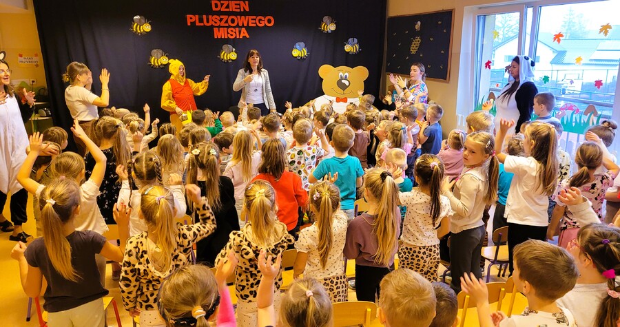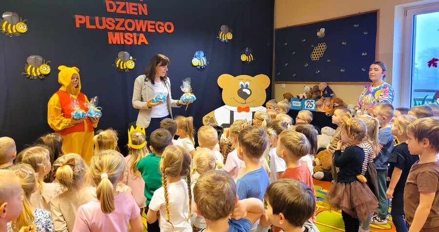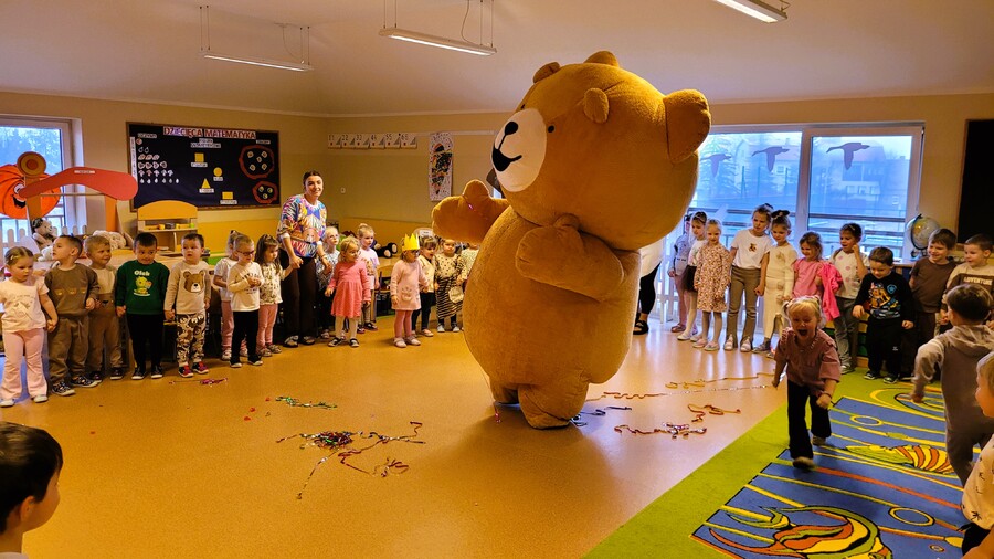 Dziś wraz z dziećmi do przedszkola przywędrowały duże i małe misie, a zajęcia wypełniły zabawy, opowieści i wspólne aktywności rozwijające wyobraźnię oraz współpracę.