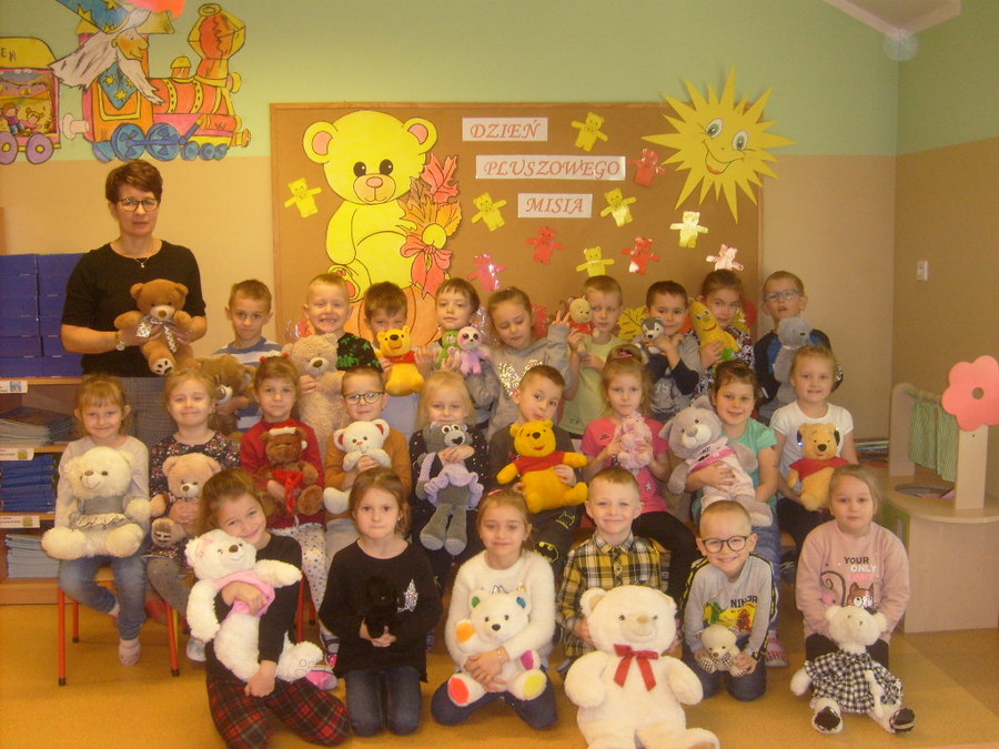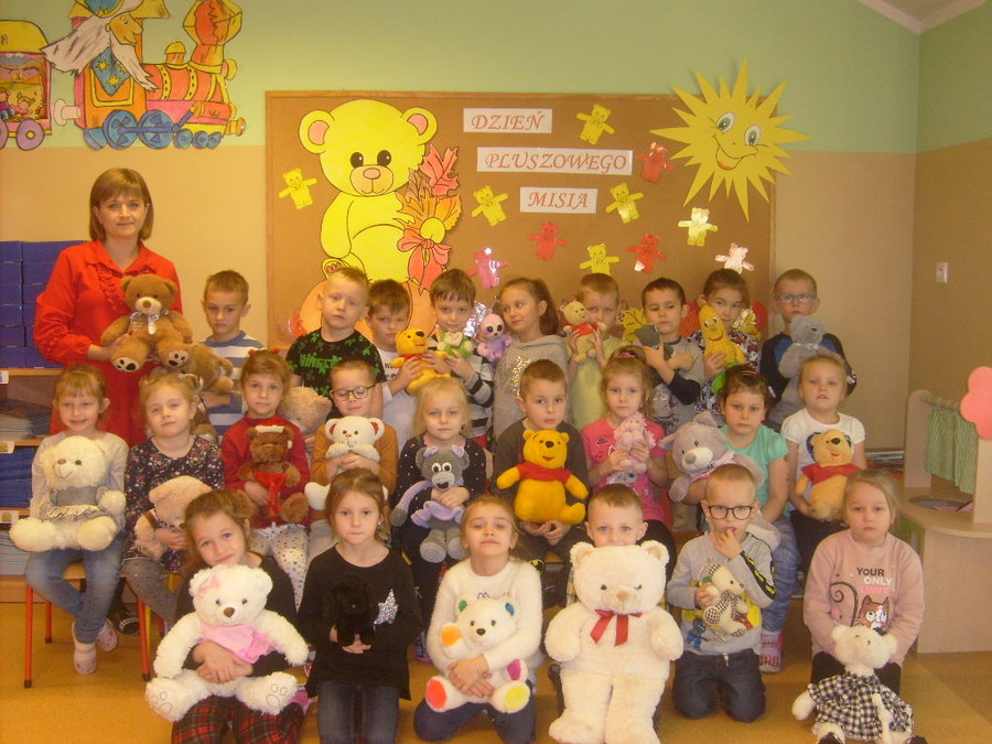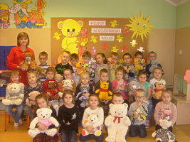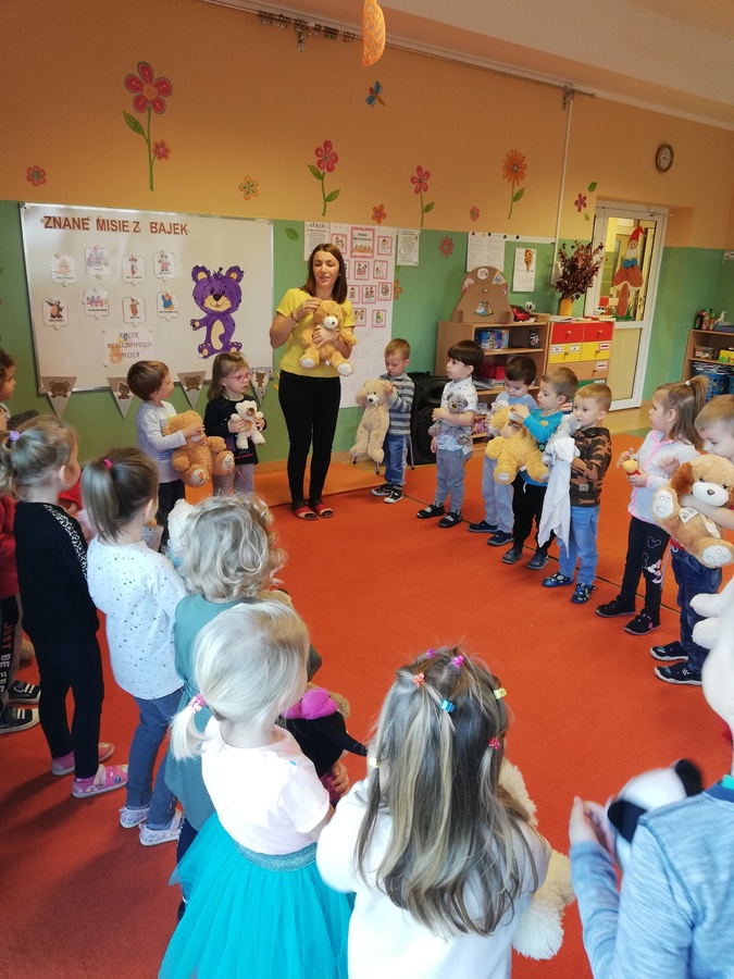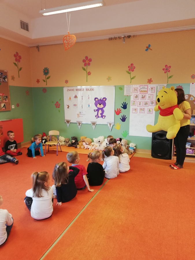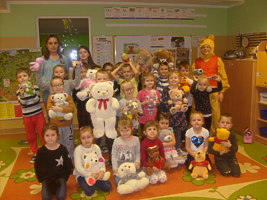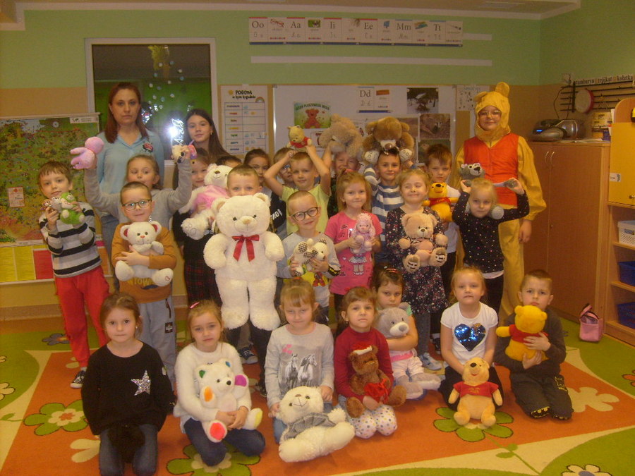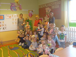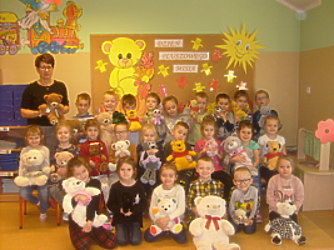25 listopada przypada Święto Misia i dlatego głównym bohaterem tego dnia w naszym przedszkolu był miś. Każde dziecko przyszło do przedszkola z misiem, który uczestniczył we wszystkich zabawach i zajęciach. Były to: nauka piosenek, rymowanek, tańca, opowiadania o misiowych postaciach bajkowych. Miś też zagościł w naszej stołówce i od tego dnia pełni bardzo ważną rolę – przypomina o poprawnym zachowaniu w czasie posiłku. Wyjątkowymi gośćmi byli uczniowie szkoły podstawowej wraz z opiekunem panią Ewą Gaze, którzy czytali przedszkolakom bajki. W gronie gości był również Kubuś Puchatek, w którego rolę wcieliła się jedna z uczennic. Świętowanie zakończył wspólny poczęstunek i prezenty.