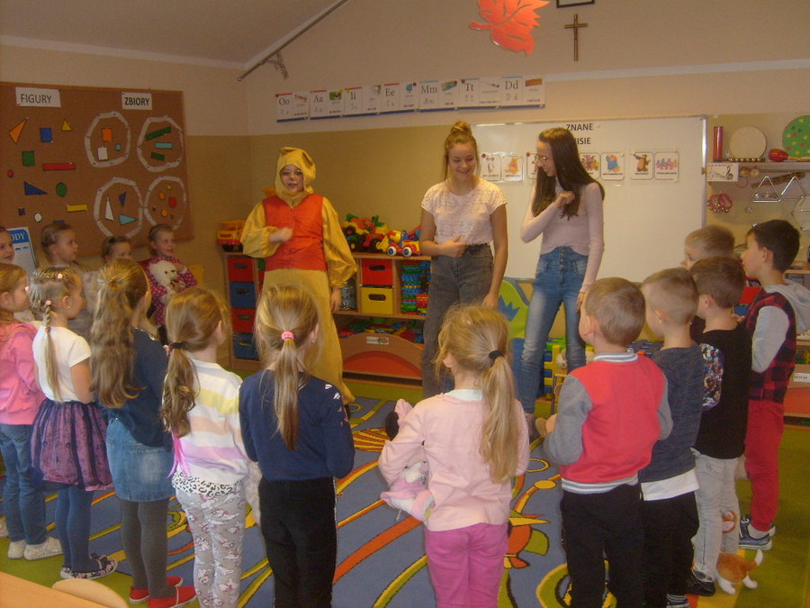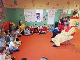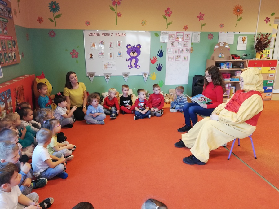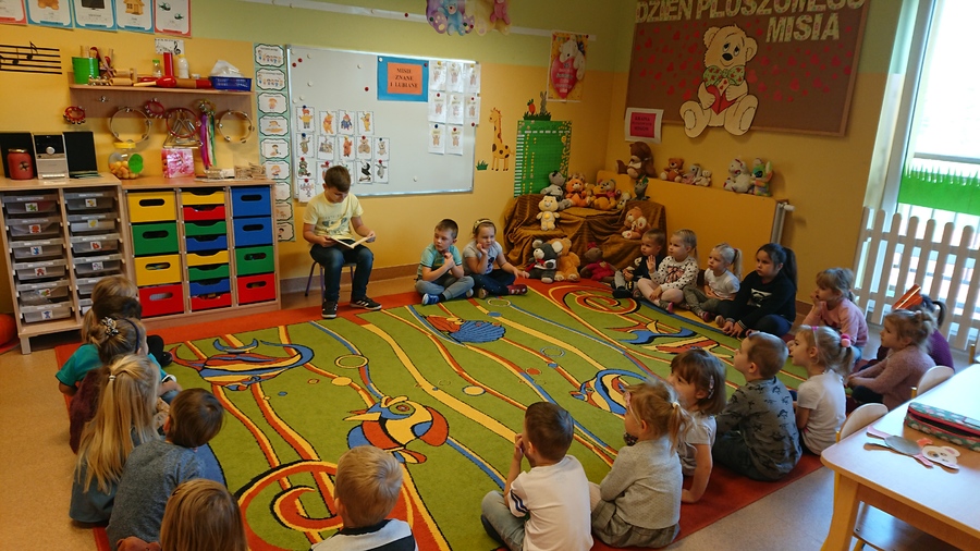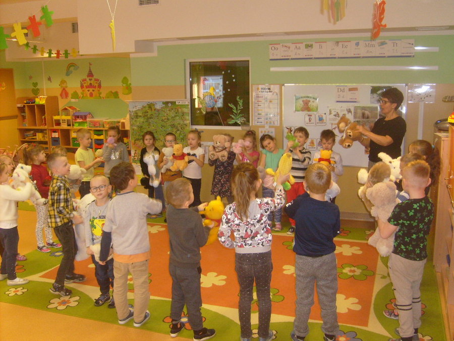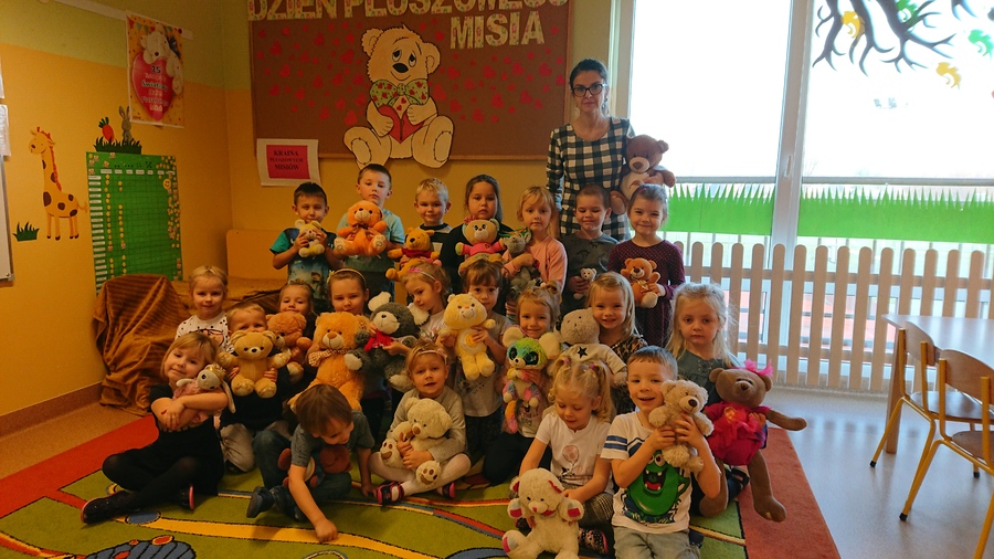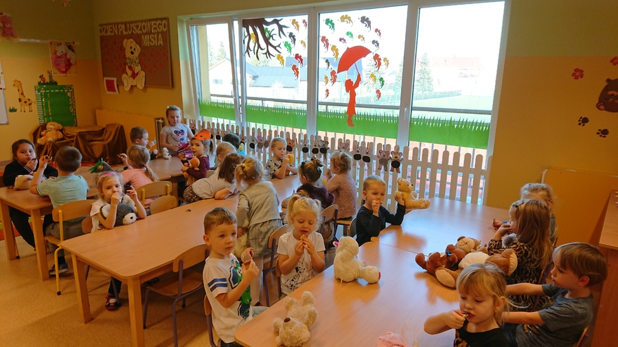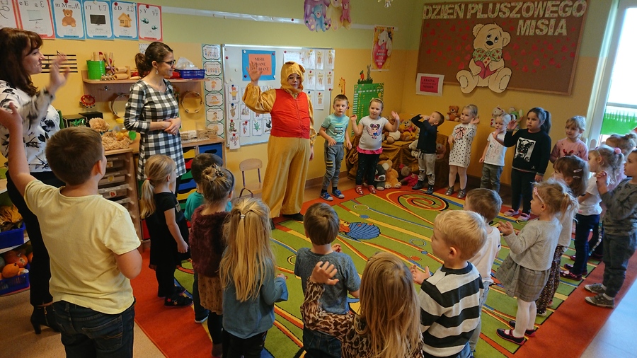 25 listopada przypada Święto Misia i dlatego głównym bohaterem tego dnia w naszym przedszkolu był miś. Każde dziecko przyszło do przedszkola z misiem, który uczestniczył we wszystkich zabawach i zajęciach. Były to: nauka piosenek, rymowanek, tańca, opowiadania o misiowych postaciach bajkowych. Miś też zagościł w naszej stołówce i od tego dnia pełni bardzo ważną rolę – przypomina o poprawnym zachowaniu w czasie posiłku. Wyjątkowymi gośćmi byli uczniowie szkoły podstawowej wraz z opiekunem panią Ewą Gaze, którzy czytali przedszkolakom bajki. W gronie gości był również Kubuś Puchatek, w którego rolę wcieliła się jedna z uczennic. Świętowanie zakończył wspólny poczęstunek i prezenty.