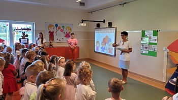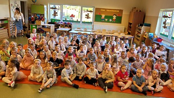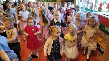 W środowe przedpołudnie, 20 września obchodziliśmy niezwykle ważny dla nas Dzień Przedszkolaka. To wyjątkowy dzień dla wszystkich dzieci uczęszczających do przedszkola. Nasze uroczystości rozpoczęliśmy w sali Krasnoludków, gdzie dzieci przyjęły życzenia od swoich pań. Po części oficjalnej nie zabrakło wspólnej zabawy z Quizem wiedzy o przedszkolu i radosnymi pląsami przy piosence „Tańcz i stop”.
