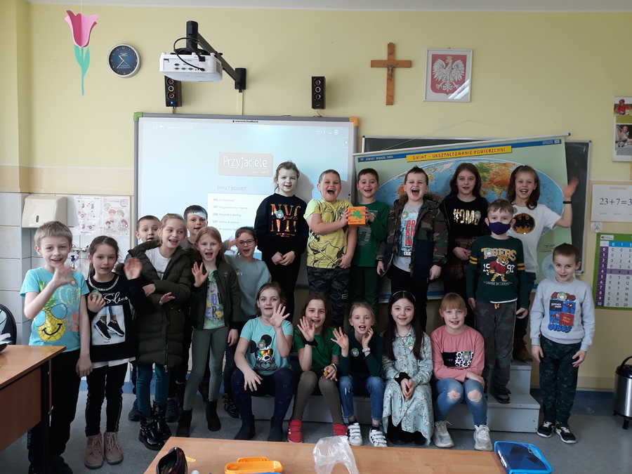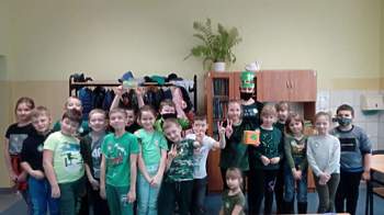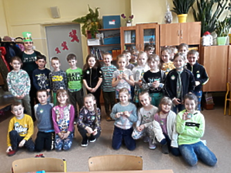 Podsumowaniem obchodów Dnia Świętego Patryka w klasach I-III były pamiątkowe zdjęcia, do których pozowali ubrani na zielono uczniowie.