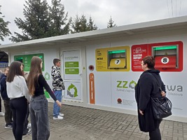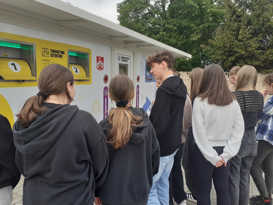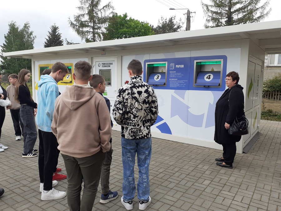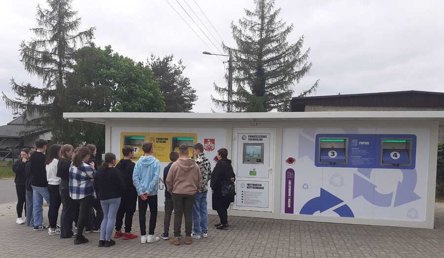 7 maja uczniowie klasy VII b uczestniczyli w nietypowej lekcji ekologicznej. Zajęcia odbyły się przy elektronicznej altanie służącej do selektywnego gromadzenia odpadów, która znajduje się w Trzcinicy przy ul. Jana Pawła II. Uczniowie podczas lekcji zostali zapoznani z instrukcją korzystania z tego urządzenia oraz poznali zasady właściwej segregacji odpadów. Zajęcia pozwoliły usestymatyzować wcześniejszą już wiedzę oraz zrozumieć, że segregacja odpadów może wpłynąć pozytywnie na jakość powietrza. W trakcie zajęć uczniowie byli bardzo aktywni i wykazali się dużą wiedzą ekologiczną.
