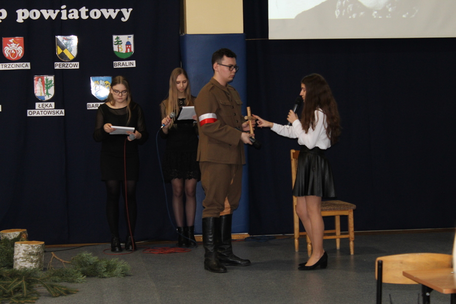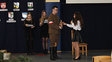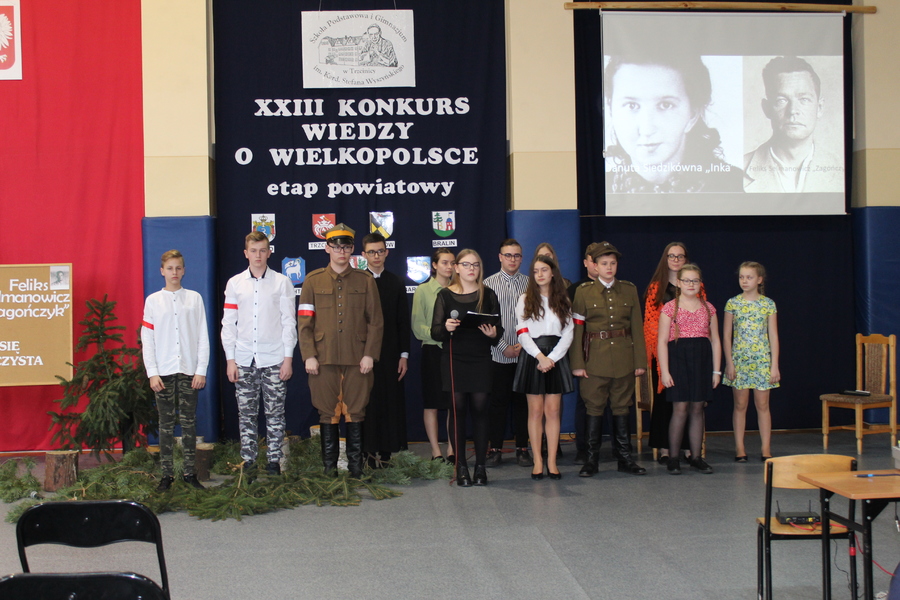 Uczniów – uczestników konkursu i ich opiekunów powitali: dyrektor Zespołu Szkół w Trzcinicy Małgorzata Hadzik, wicedyrektor Ewa Hetmańczyk, członek Zarządu Powiatu Kępińskiego Renata Ciemny, przewodnicząca Rady Powiatu Kępińskiego Jolanta Jędrecka, wójt Gminy Trzcinica Grzegorz Hadzik. Uczniowie przez 45 minut zmagali się z testami, które przysłało do szkoły Stowarzyszenie Gmin i Powiatów Wielkopolski. Podczas, gdy komisja sprawdzała prace, uczestnicy konkursu, nauczyciele i goście obejrzeli przedstawienie przygotowane z okazji Narodowego Dnia Pamięci „Żołnierzy Wyklętych” pt. „Marzyła im się Polska wolna i czysta”. Podczas spektaklu uczniowie Zespołu Szkół w Trzcinicy, pod kierunkiem nauczycielki historii Jolanty Jelonek, wyjaśnili pojęcie „żołnierze wyklęci”, przybliżyli kontekst historyczny wydarzeń i przedstawili historię Danuty Siedzikówny ps. „Inka” i Feliksa Selmanowicza ps. „Zagończyk”.