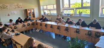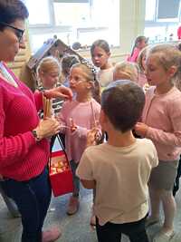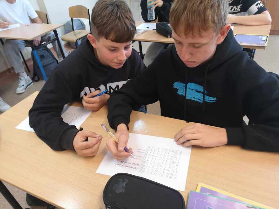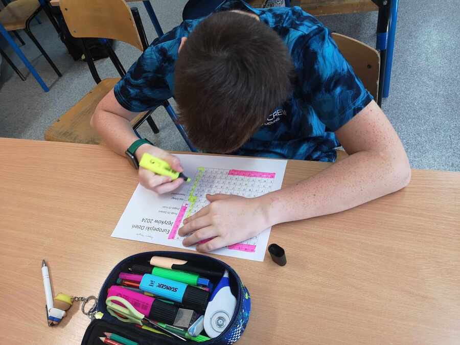 Z tej okazji nauczyciele języków zorganizowali dla uczniów szereg ciekawych zadań w języku angielskim i niemieckim. Dla klasy 1 i 2 zorganizowano zabawę: „Find the word-znajdź słowo”, która polegała na tym, że podczas przerwy uczniowie szukali na korytarzu obrazków odpowiadających podanym słówkom angielskim. Klasy 3 losowały karty „Give me 3-podaj 3”. Zadaniem było podanie 3 słów z danej kategorii, np. miesiące i dni tygodnia. Klasy 4-8 rozwiązywały quizy i wykreślanki o zwierzętach, krajach i narodowościach, kulturze, a także z zakresu ogólnego słownictwa, jak liczby, rodzina, jedzenie, szkoła. Mimo krótkiego czasu uczniowie chętnie i licznie wzięli udział w przygotowanych zadaniach. Uczestnicy otrzymali słodkie co-nieco, a za największą liczbę poprawnych odpowiedzi ołówek upamiętniający dzisiejszy dzień.