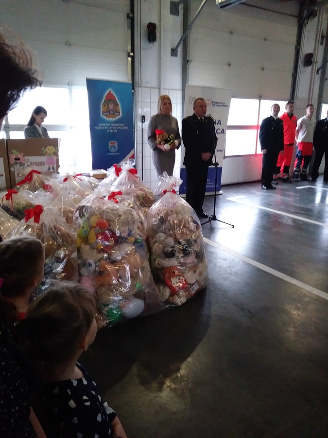 Dzieci wraz z kierownikiem przedszkola panią Mariolą Bednarek zaproszeni zostali przez Poseł na Sejm Rzeczypospolitej Polskiej Panią Bożenę Henczycę, Komendanta Powiatowego Powiatowej Straży Pożarnej brygadiera Wojciecha Grabarka i Koordynatora portalu Kępno 998 Pana Macieja Kubota do Zawodowej Straży Pożarnej w Kępnie, gdzie otrzymały osobiste podziękowanie i certyfikat z rąk Pani Poseł Bożeny Henczycy za włożony trud i zaangażowanie na rzecz bezinteresownej pomocy innym. Spotkały się z „Wielkim Pluszowym Misiem”, z którym chętnie pozowały do zdjęć.