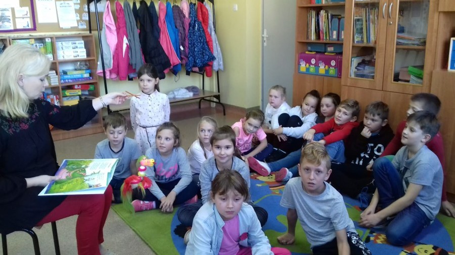 Każdego roku 29 września w całej Polsce obchodzony jest Dzień Głośnego Czytania. Jest to święto, którego najważniejszymi odbiorcami są dzieci. Głośne czytanie to nie tylko mile spędzony wspólnie czas. Czytanie na głos stymuluje prawidłowy rozwój dziecka, wzbogaca słownictwo oraz pobudza wyobraźnię. W naszej szkole w klasach I-III akcję tę rozpoczęliśmy 29 września 2018r. i kontynuowaliśmy przez cały październik. Każda z klas przygotowała lekcję głośnego czytania w inny sposób. Czytaliśmy lektury, legendy polskie oraz najbardziej bliskie dzieciom bajki i baśnie. Wychowawczyni klasy I czytała uczniom „Plastusiowy pamiętnik” Marii Kownackiej, rozdział „Historia niewesoła wcale jak do szkoły przyszły lale”. Pozostałe rozdziały są systematycznie czytane na lekcjach w wolnym czasie. Klasy IIa, IIb i III rozpoczęły od wspólnego czytania w lesie „Z przygód krasnala Hałabały” Lucyny Krzemienieckiej, gdzie słuchaczami byli nie tylko uczniowie ale i zwierzęta. Oprócz leśnych historii klasa IIa wysłuchała „W moim ogrodzie mieszka czarodziej” Kaliny Jerzykowskiej. Klasa IIb wsłuchiwała się w legendy polskie: „Kwiat Paproci”, „Syrenka Warszawska”, „Smok Wawelski”. Wychowawczyni klasy III przeprowadziła lekcję głośnego czytania z przyjaciółmi dzieci - psami, gdzie uczniowie wsłuchiwali się w lekturę „O psie, który jeździł koleją” Romana Pisarskiego. Po wysłuchaniu przeczytanych fragmentów książek w szkole, uczniowie otrzymali wieże czytelnicze i tym samym rozpoczęliśmy akcję codziennego, głośnego czytanie w domu, którą nadzorują rodzice.