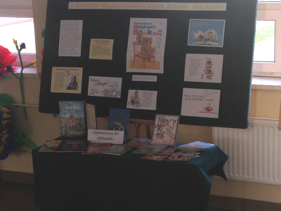 2 kwietnia przypada Międzynarodowy Dzień Książki dla Dzieci. Jest to święto obchodzone na całym świecie, w dzień urodzin duńskiego baśniopisarza Hansa Christiana Andersena. Ma ono na celu upowszechnianie książek dla dzieci oraz wspieranie czytania przez najmłodszych. Biblioteka szkolna włączyła się w obchody tego święta. W tym dniu na każdej przerwie śródlekcyjnej bibliotekarka szkolna czytała bajki najmłodszym uczniom. Były to nie tylko utwory H. Ch. Andresena, ale również innych autorów. Również dziewczynki z klasy czwartej czytały swoim koleżankom i kolegom. W holu szkoły biblioteka szkolna przegotowała wystawę promującą to święto i zachęcającą do odwiedzin biblioteki.
