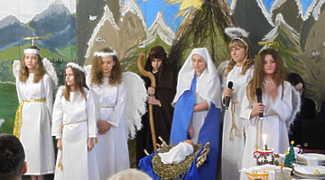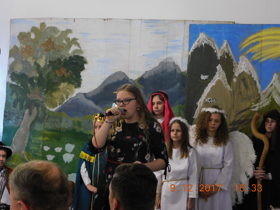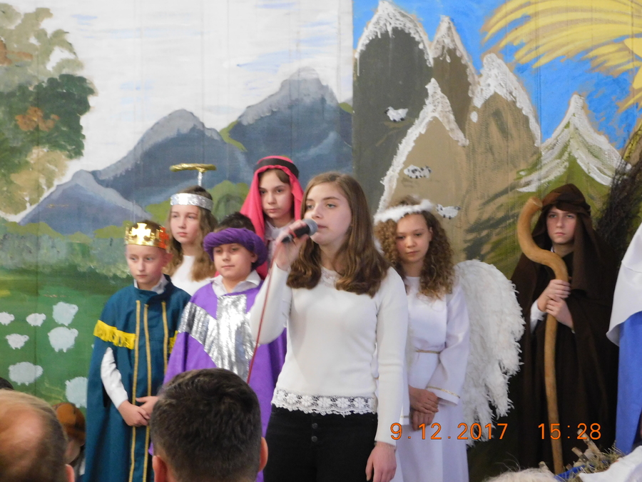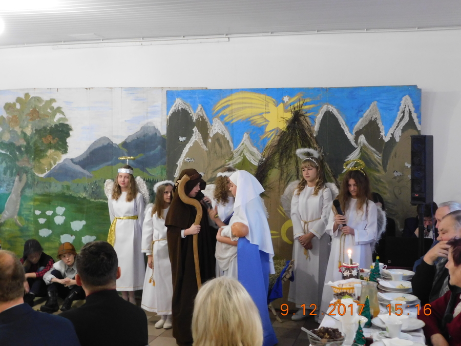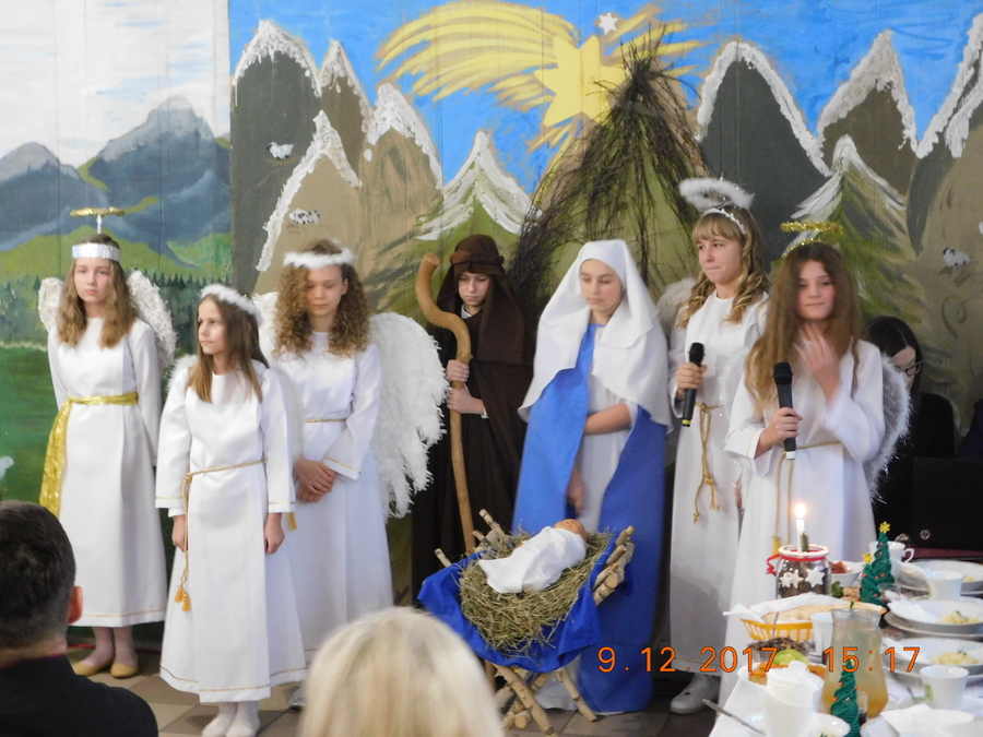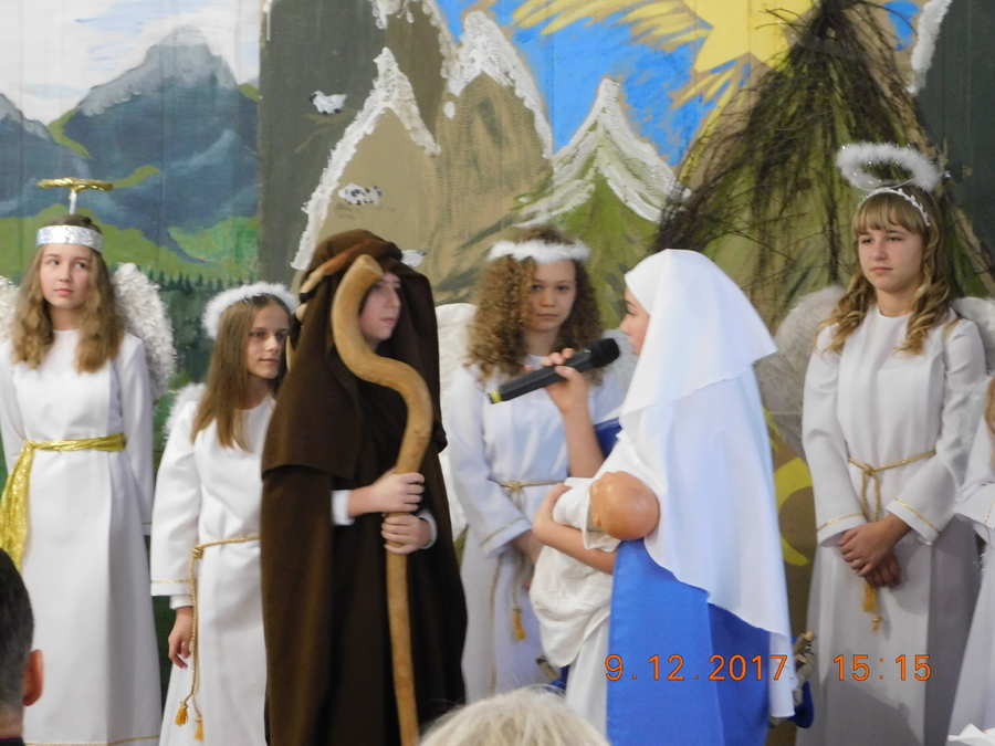 09 grudnia 2017r. podczas Gminnej Wigilii, która odbyła się w Aniołce Pierwszej, uczniowie naszej szkoły zaprezentowali Jasełka. Scenki z Betlejem przeplatane były kolędami i piosenkami świątecznymi. Przedstawienie przygotowane zostało pod kierunkiem nauczycielek: pani Lidii Jerczyńskiej, pani Beaty Więcek-Szczurowskiej i pani Agnieszki Podejmy-Wróblewskiej. Nagłośnieniem zajęła się pani Magdalena Wypych.