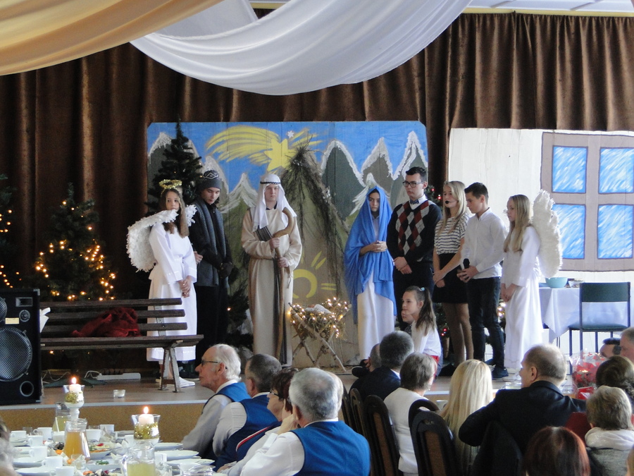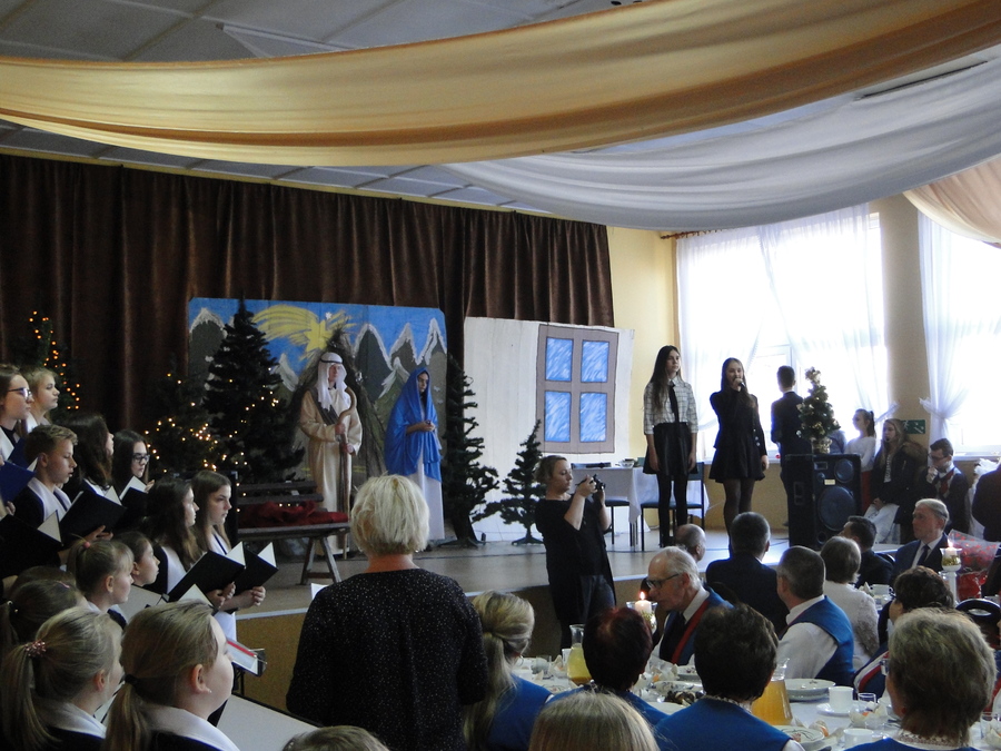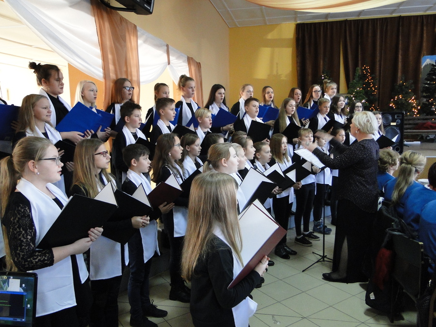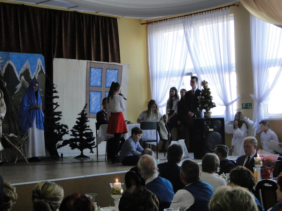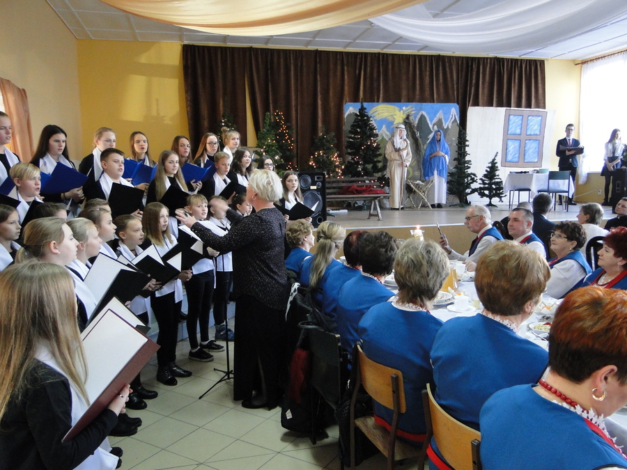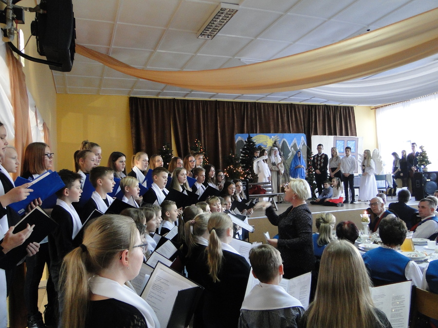 08 grudnia 2018r. podczas Gminnej Wigilii, która odbyła się w Piotrówce, uczniowie naszej szkoły zaprezentowali scenki związane ze Świętami Bożego Narodzenia, które były przeplatane kolędami i piosenkami świątecznymi w wykonaniu chóru szkolnego. Występujący przypomnieli zebranym gościom o istocie Świat, a chór swoim występem wprowadził świąteczny nastrój.