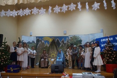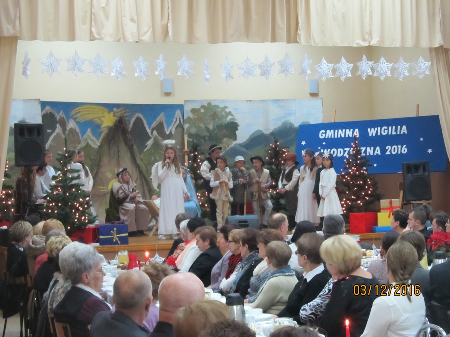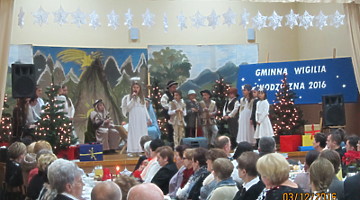 Uczniowie klas III Szkoły Podstawowej w Trzcinicy przygotowali część artystyczną na Gminne Spotkanie Opłatkowe, które odbyło się 03 grudnia 2016r. w Wodzicznej. Zaprezentowali krótkie Jasełka przeplatane kolędami i piosenkami światecznymi. Przygotowaniem występów dzieci zajęły się wychowawczynie Ewelina Jędryca i Maria Olejnik.