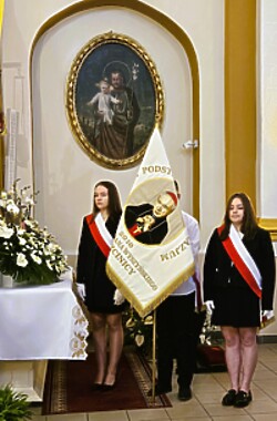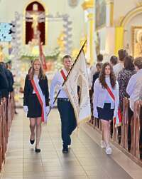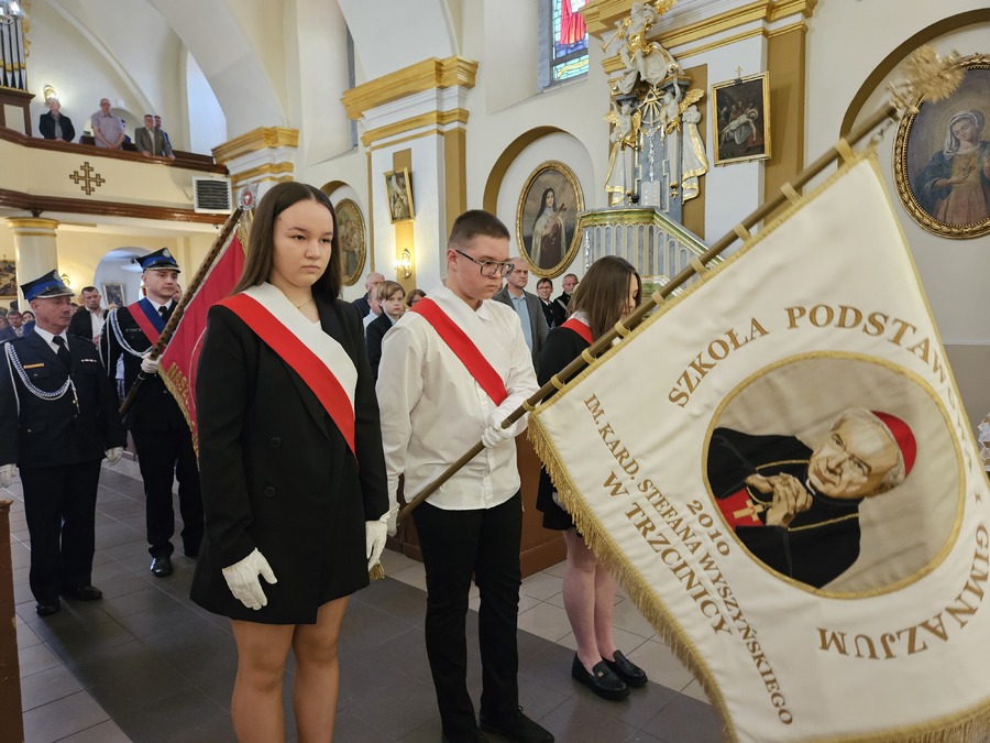Dziś Poczet Sztandarowy naszej szkoły, delegacja uczniów i nauczycieli wzięli udział w gminnych obchodach Święta Narodowego Trzeciego Maja. Upamiętnienie kolejnej rocznicy uchwalenia Konstytucji 3 maja rozpoczęło się uroczystą Mszą świętą z modlitwą za Ojczyznę, którą odprawił proboszcz parafii p.w. Św. St. Biskupa i Męczennika w Trzcinicy ks. kanonik Grzegorz Mituła.