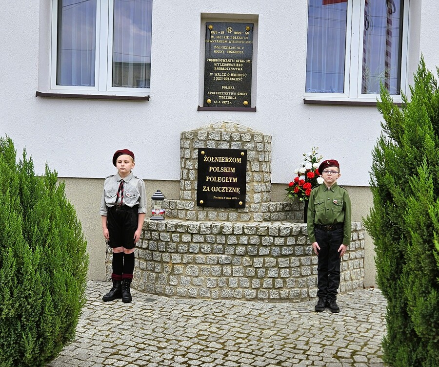 Dalsza część uroczystości miała miejsce przy tablicy pamiątkowej poświęconej poległym Powstańcom Wielkopolskim i Żołnierzom Wojska Polskiego, gdzie odśpiewano Hymn Polski, wójt gminy Trzcinica Pan Grzegorz Hadzik odniósł się do historii obchodów dzisiejszego święta, a przybyłe delegacje złożyły kwiaty i zapaliły znicze.