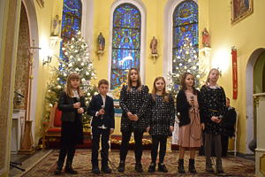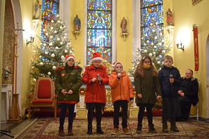 Kolędowanie rozpoczął nasz szkolny chór (wzmocniony głosami absolwentów) pod dyrekcją pani Renaty Adamskiej.