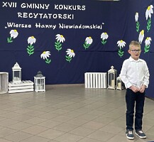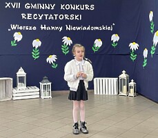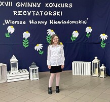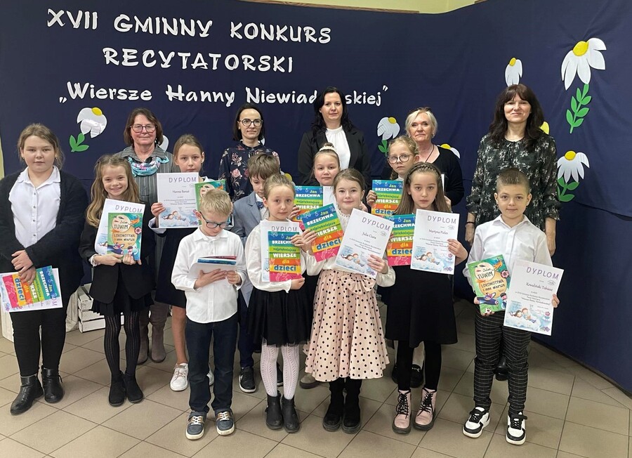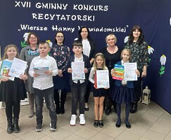 12 marca w naszej szkole odbył się XVII Gminny Konkurs Recytatorski. Tegoroczna edycja poświęcona została utworom Hanny Niewiadomskiej. Konkurs otworzyła wiecedyrektor szkoły pani Renata Adamska-Garbowska witając przybyłych gości, komisję konkursową i samych konkursowiczów. Następnie głos zabrał, uczestniczący w rozpoczęciu konkursu Wójt Gminy Trzcinica – Pan Grzegorz Hadzik dziękując za zorganizowanie wydarzenia i życząc powodzenia wszystkim uczestnikom. W konkursie wzięli udział uczniowie klas I-III z Gminy Trzcinica. W przesłuchaniach konkursowych zaprezentowało się aż 24 uczestników. Wszystkie recytacje były niezwykłe i zasługiwały na zauważenie. Ocena uczniowskich zmagań należała komisji konkursowej, w której pracowały: