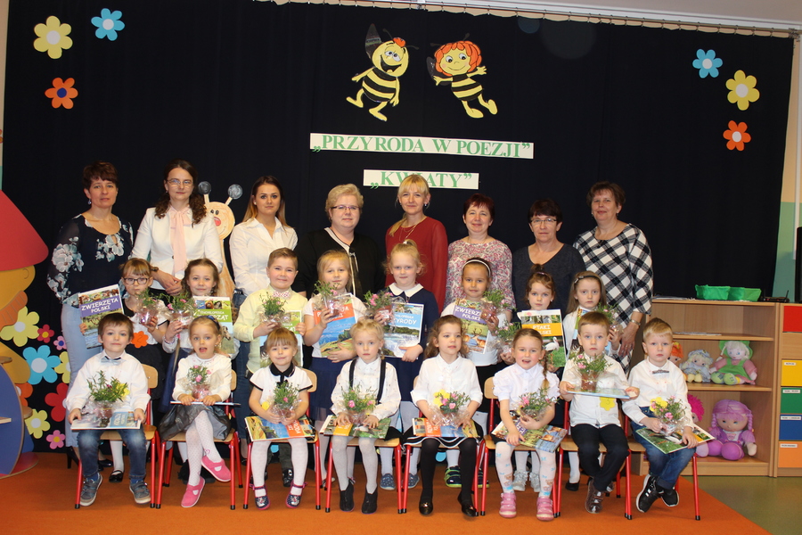 27 kwietnia 2017r. w Publicznym Przedszkolu Samorządowym w Trzcinicy odbył się Gminny Konkurs Recytatorski „Przyroda w poezji” – przedszkolaki z całej gminy recytowały wiersze o kwiatach. Sala przedszkolna przypominała wielki bukiet kwiatów. Wszystkich uczestników zarówno dzieci, nauczycieli jak i zaproszonych gości powitała kierownik przedszkola Mariola Bednarek. Wójta Gminy Trzcinica reprezentowała Sekretarz Gminy Renata Ciemny. Komisja konkursowa w składzie: Ewa Hetmańczyk – wicedyrektor ZS w Trzcinicy, Renata Gość – dyrektor Gminnej Biblioteki Publicznej w Trzcinicy i Dominika Stężały – pracownik Urzędu Gminy w Trzcinicy, oceniała dzieci w dwóch kategoriach wiekowych.