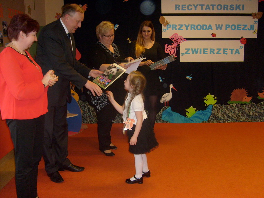 Prezentacje dzieci oceniało jury w składzie: Ewa Hetmańczyk – wicedyrektor Zespołu Szkół w Trzcinicy, Wiesława Maciej – nauczyciel Zespołu Szkół w Laskach, Dominika Oleś – pracownik Urzędu Gminy w Trzcinicy. 18 uczestników konkursu zaprezentowało wiersze o zwierzętach. Zgromadzona w sali publiczność, którą stanowiły dzieci z Przedszkola w Trzcinicy, nagradzała oklaskami piękne recytacje.