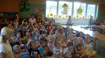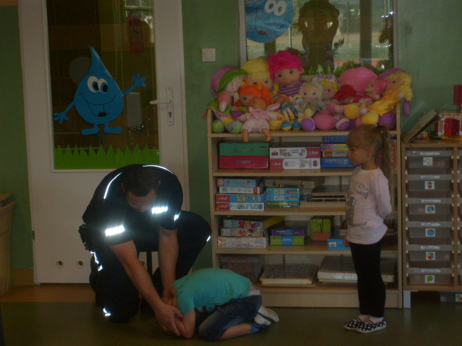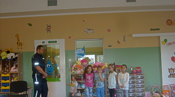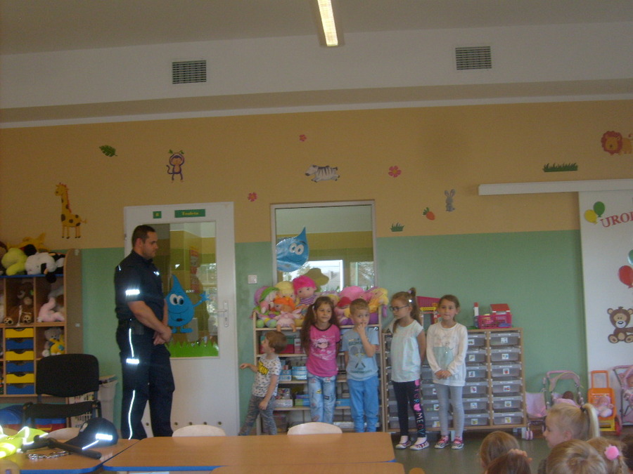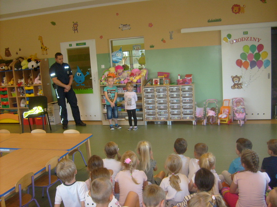 Na zakończenie przedszkolacy przypomnieli najważniejsze zasady bezpieczeństwa. Oczywiście nie zabrakło też zdjęć. Roześmiane buzie dzieci najlepiej świadczą o pozytywnych odczuciach, które towarzyszyły spotkaniu.