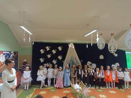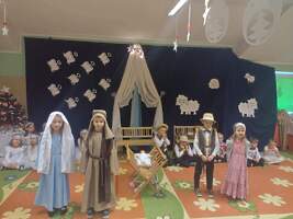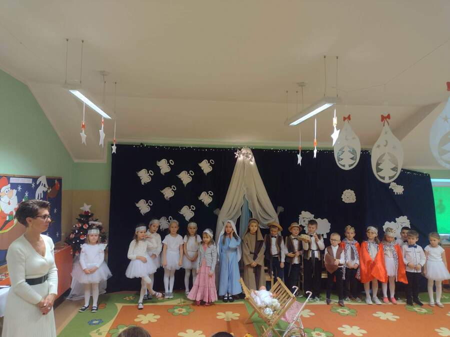 20 grudnia 2022r. dzieci ze starszych grup „Muchomorki” i „Smoki Dinusie” zaprosiły do przedszkola swoich rodziców, którym przedstawiły Jasełka. Po przedstawieniu wręczyły im przygotowane dla nich prezenty.