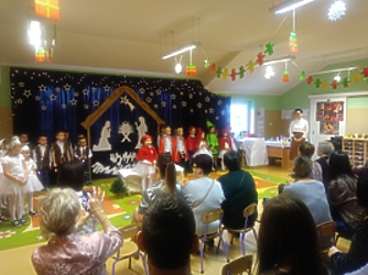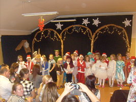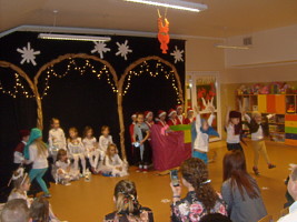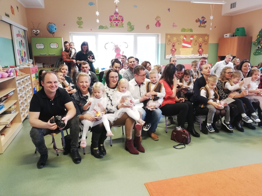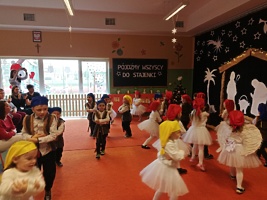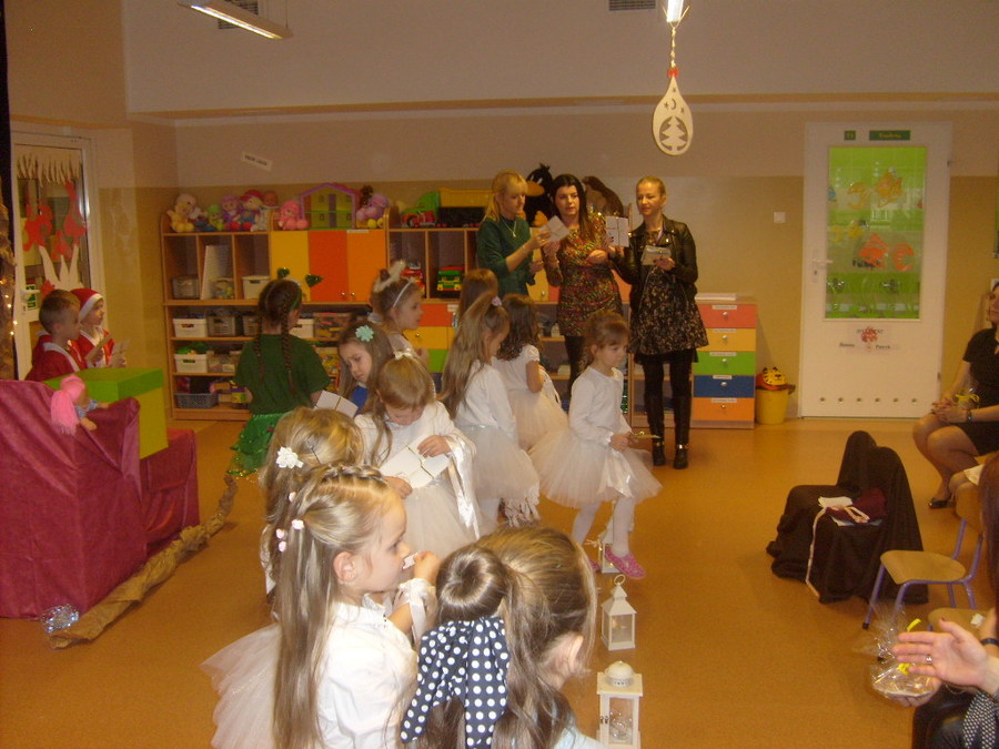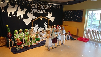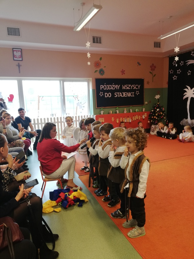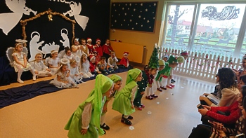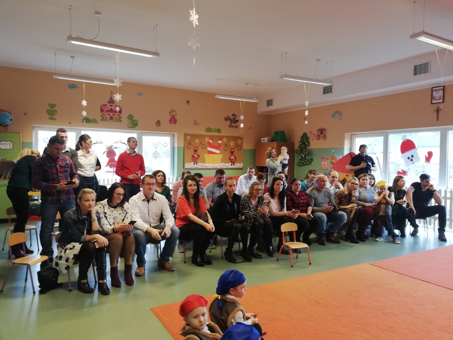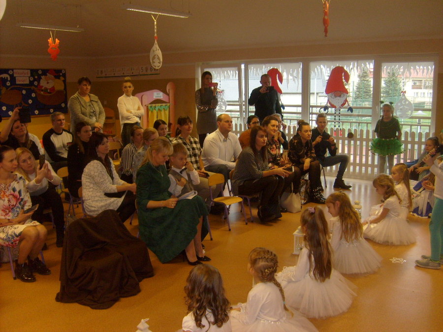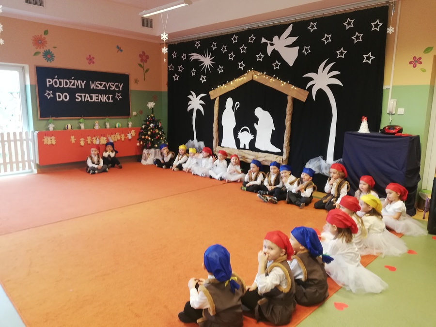 17 grudnia 2019r.dzieci z grup przedszkolnych „Krasnoludki” i „Jeżyki”, a 18 grudnia 2019r. dzieci z grup „Muchomorki” i „Smoki Dinusie” zaprosiły rodziców, aby zaprezentować im bożonarodzeniowe przedstawienia. W tych dniach przedszkolem zawładnęły: Aniołki, Mikołaje, Choinki, Pasterze, Królowie i inne postacie z Jasełek. W każdej z sal, w specjalnie przygotowanej scenografii, dzieci recytując, mówiąc, śpiewając, a także ruchem zaprezentowały swoje przygotowanie do przeżywania Świąt Bożego Narodzenia. Całość dopełniły stroje przygotowane przez rodziców, nauczycielki i Radę Rodziców.