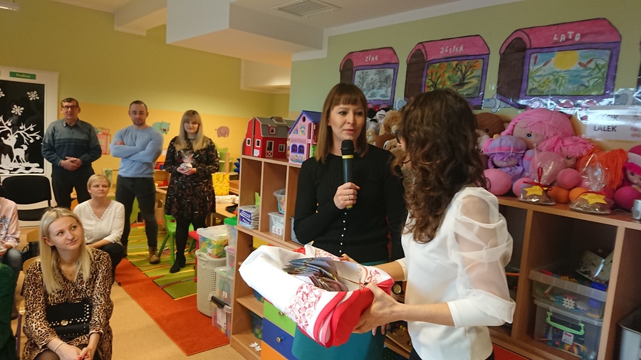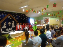 Na zakończenie złożono sobie życzenia, a dzieci obdarowały swoich rodziców własnoręcznie przygotowanymi pierniczkami. Rada Rodziców przygotowała świąteczne upominki w postaci zdjęcia dziecka z Mikołajem, które zostały wręczone w czasie uroczystości.