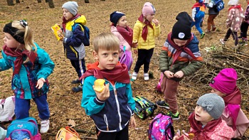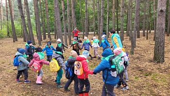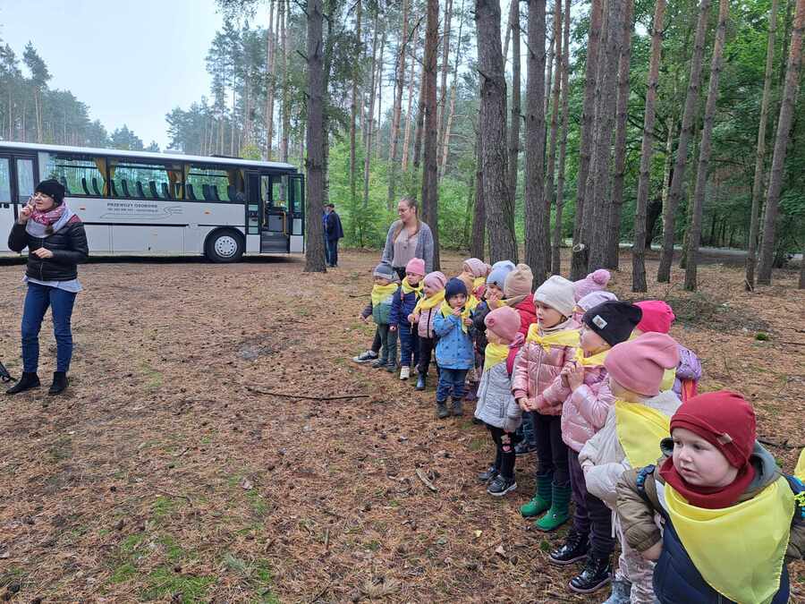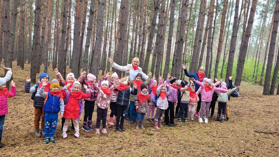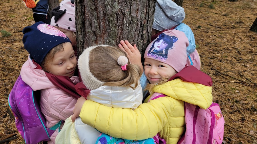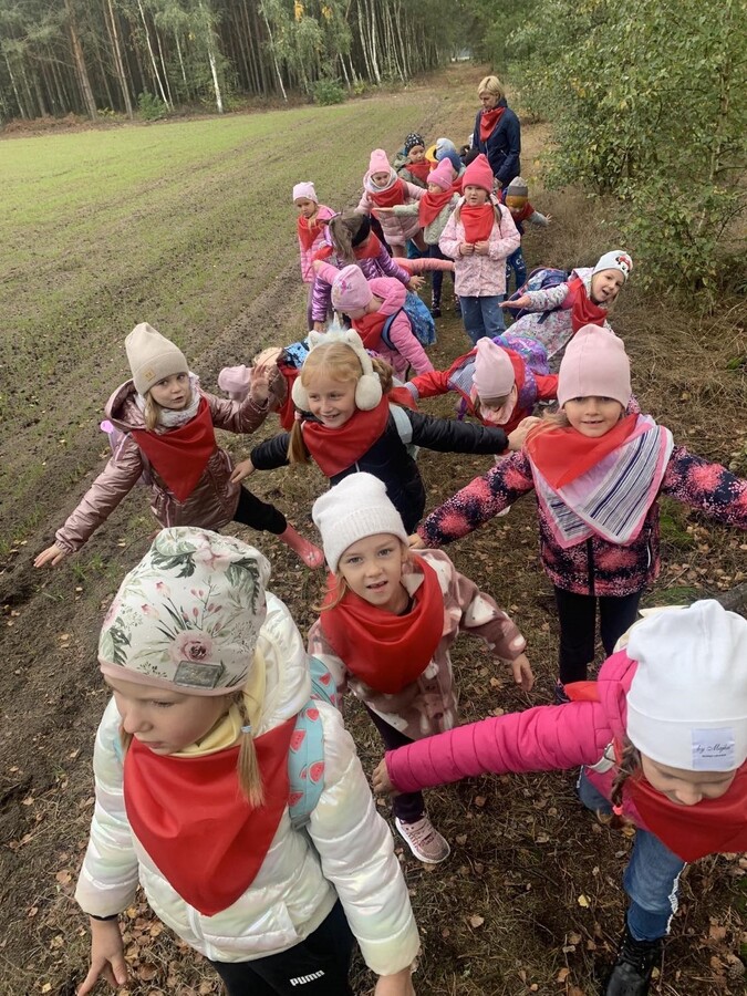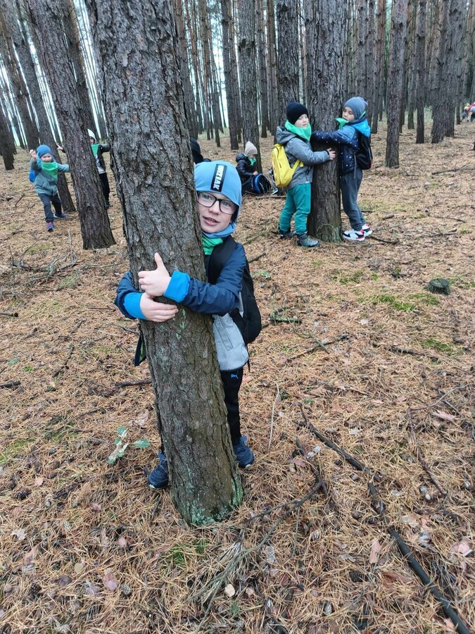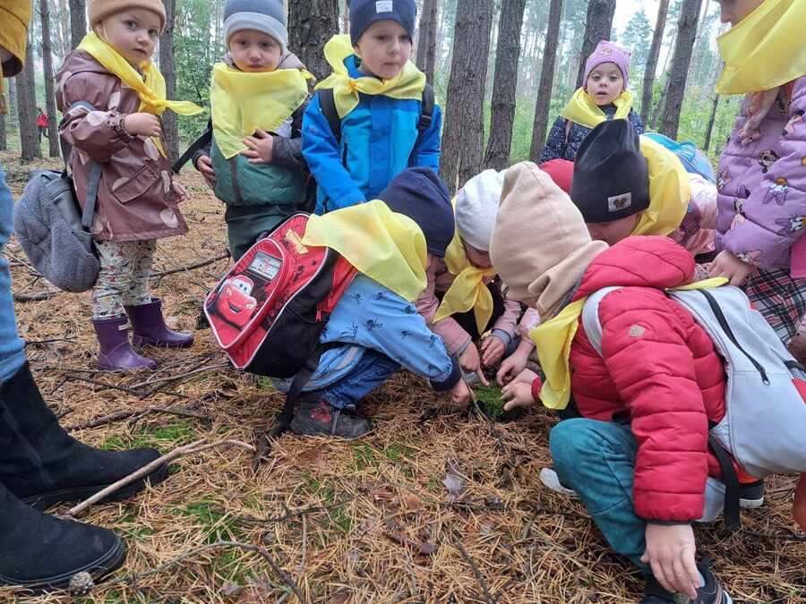 10 października - w ciepłe, jesienne przedpołudnie wszystkie przedszkolaki udały się na wycieczkę do lasu. Była to dobra okazja do świętowania Dnia Drzewa. Dzieci wędrując dróżkami poznawały przyrodę patrząc, słuchając, dotykając. Z zaciekawieniem przyglądały się jesiennym drzewostanom i leśnym krzewom.