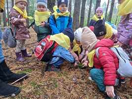 Tego dnia przedszkolaki miały jeszcze jedną okazję do świętowania. W ramach „Kreatywnych Dni Nietypowych”, wszystkie dzieci uczestniczyły w obchodach urodzin „Muchomorków” i „Jeżyków”. Świętowanie rozpoczęło się już podczas leśnej wyprawy, wśród ściółki dzieci odnalazły jeża i muchomora. Po powrocie z wycieczki „Muchomorki” i Jeżyki” zaśpiewały pozostałym dzieciom swoje grupowe piosenki i wyrecytowały tematyczne wierszyki. Tego dnia z zebranych w lesie darów jesieni powstały piękne prace przedstawiające postacie określające nazwy poszczególnych grup.