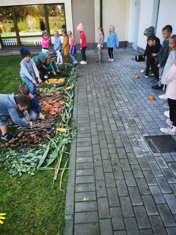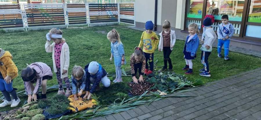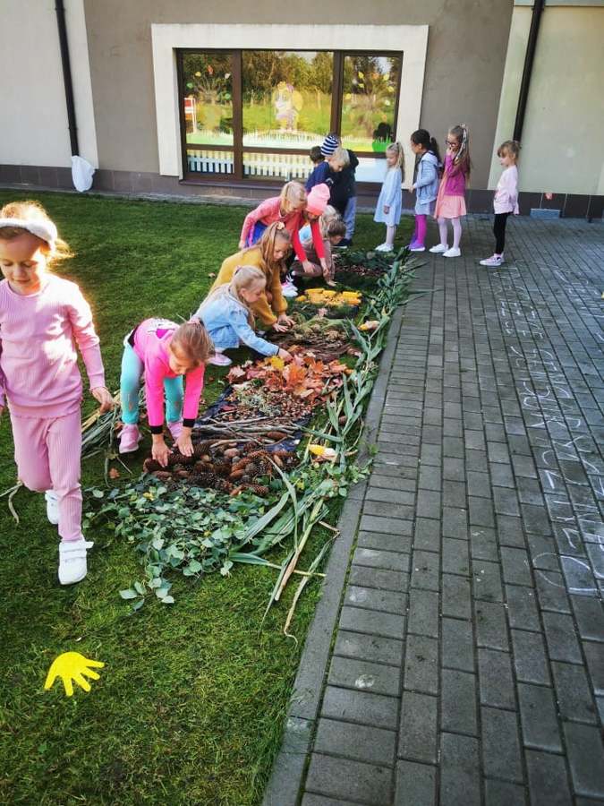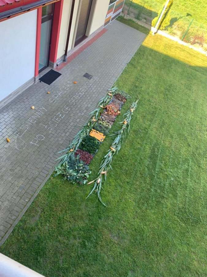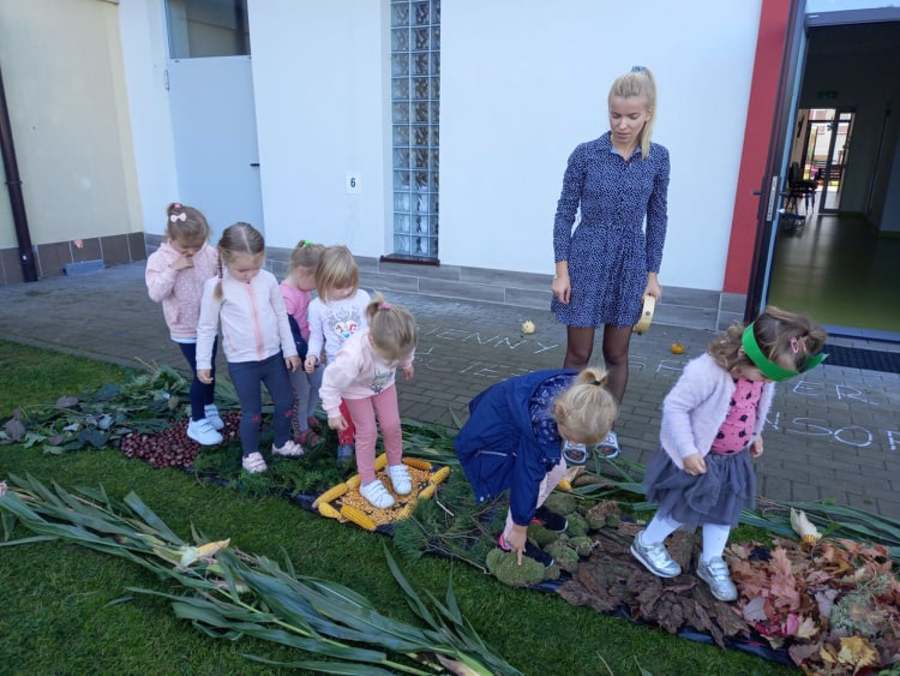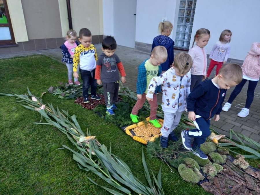5 października 2021r. nauczycielki zorganizowały w naszym przedszkolu „Jesienny spacer po ścieżce sensorycznej”. Inicjatorkami do stworzenia takiej ścieżki były wychowawczynie młodszych grup. Pani Justyna i pani Aurelia stworzyły projekt, z którego skorzystały wszystkie nasze przedszkolaki. Dzięki zaangażowaniu dzieci, rodziców i całego personelu przedszkola powstała ścieżka z darów jesieni.