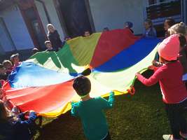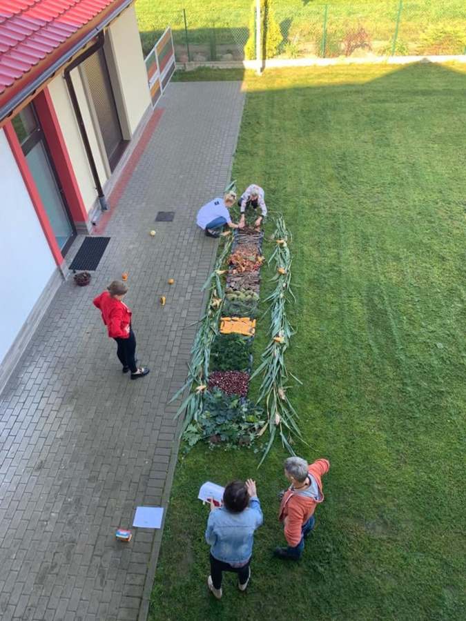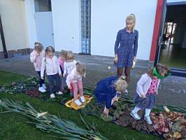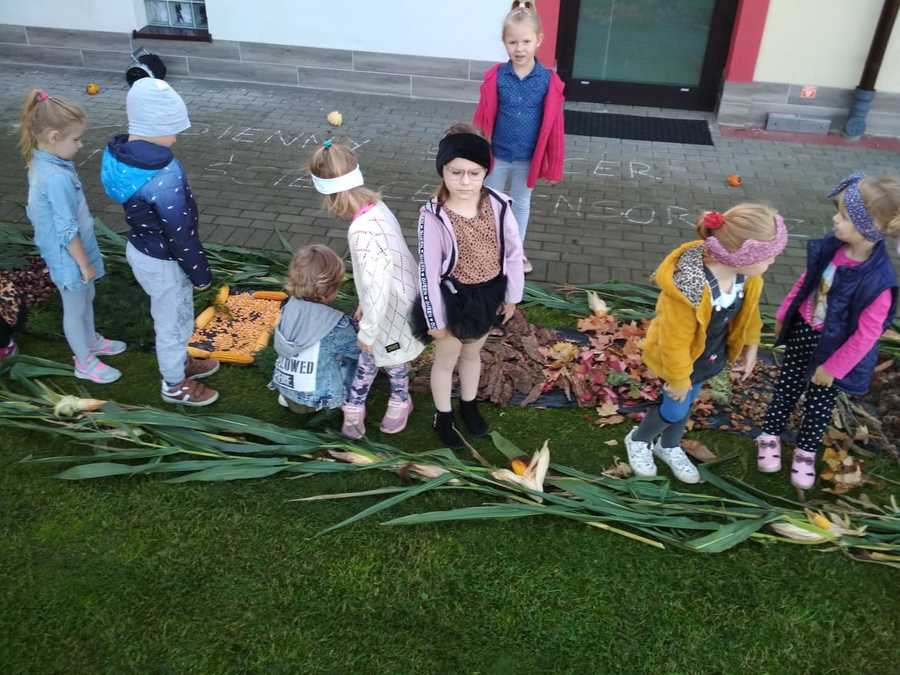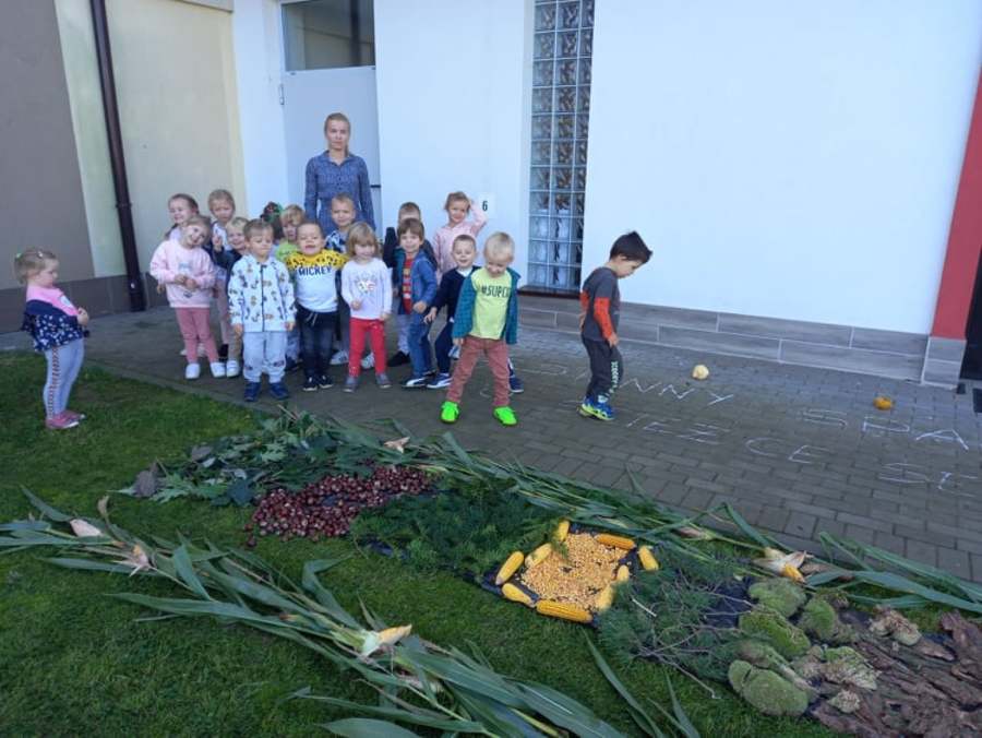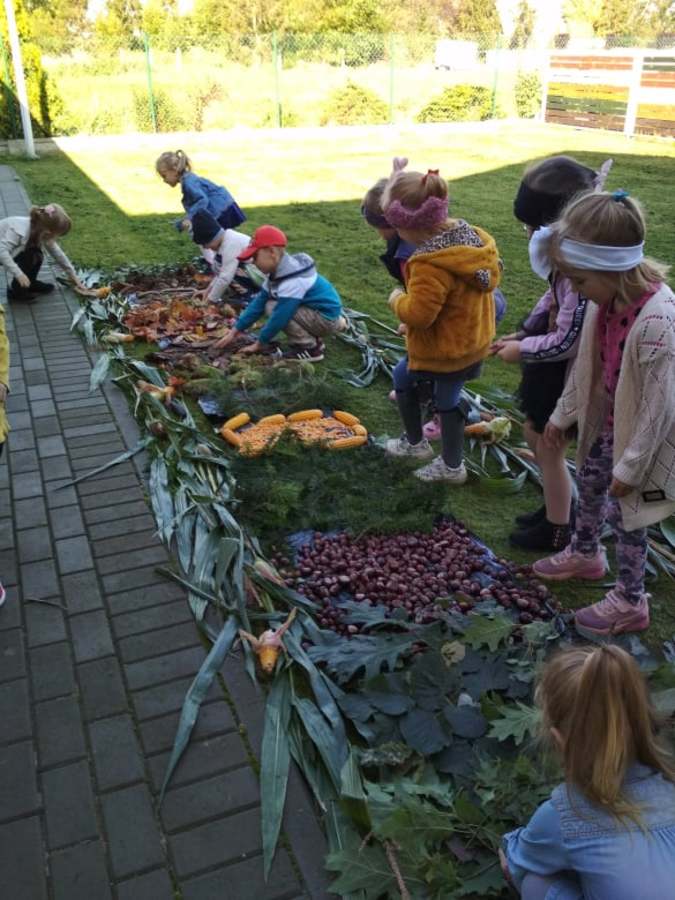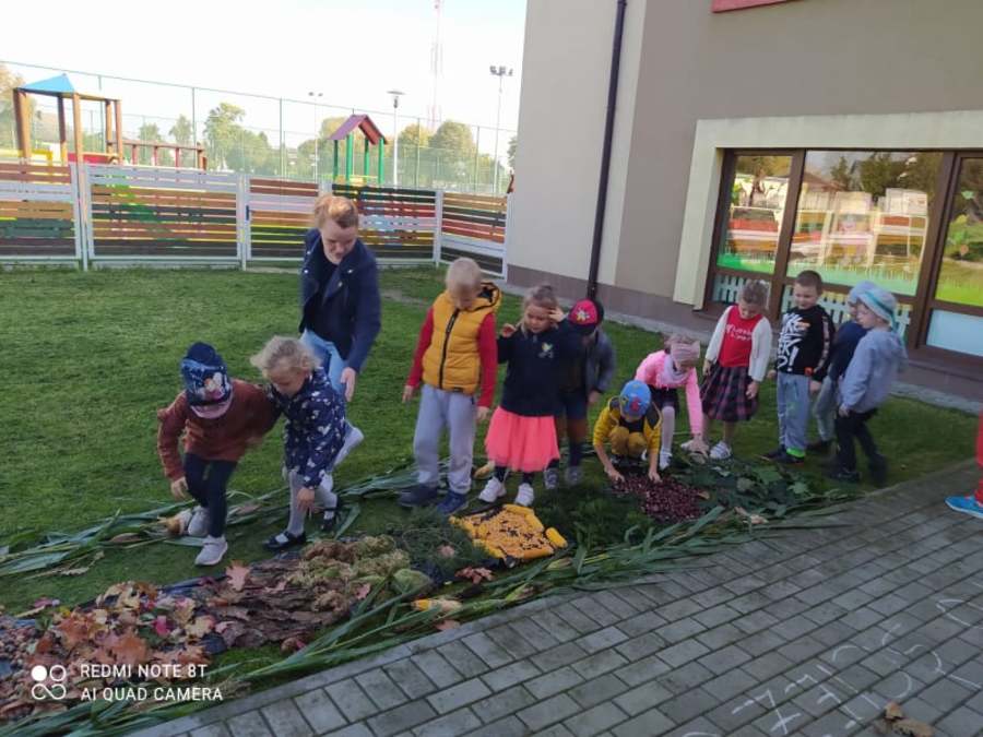 5 października 2021r. nauczycielki zorganizowały w naszym przedszkolu „Jesienny spacer po ścieżce sensorycznej”. Inicjatorkami do stworzenia takiej ścieżki były wychowawczynie młodszych grup. Pani Justyna i pani Aurelia stworzyły projekt, z którego skorzystały wszystkie nasze przedszkolaki. Dzięki zaangażowaniu dzieci, rodziców i całego personelu przedszkola powstała ścieżka z darów jesieni.