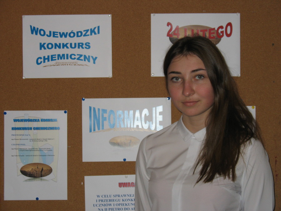 24 lutego 2017r. w Zespole Szkół Ogólnokształcących w Poznaniu odbył się etap wojewódzki Wojewódzkiego Konkursu Chemicznego. W zmaganiach na najwyższym szczeblu wzięło udział 63 uczniów reprezentujących gimnazja z całego województwa wielkopolskiego. Wśród nich była uczennica Gimnazjum im. Kard. Stefana Wyszyńskiego w Trzcinicy Julia Parzonka, która została laureatką tego konkursu. Julia przygodę z chemią rozpoczęła w klasie pierwszej gimnazjum. Chętnie rozwiązywała zadania o podwyższonym stopniu trudności, łamigłówki, testy i chemografy. Opanowała wiadomości i umiejętności wykraczające znacznie poza podstawę programową gimnazjum. W klasie trzeciej z łatwością przebrnęła przez poszczególne szczeble eliminacji tj. etap szkolny i etap rejonowy. Na etapie wojewódzkim uzyskała wymaganą liczbę punktów, aby zostać laureatem. Dzięki temu zostanie zwolniona z egzaminu gimnazjalnego z części przyrodniczej i otrzyma maksymalną liczbę punktów. Przygotowaniem do konkursu zajęła się nauczycielka chemii mgr Grażyna Kłoczaniuk.