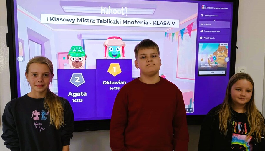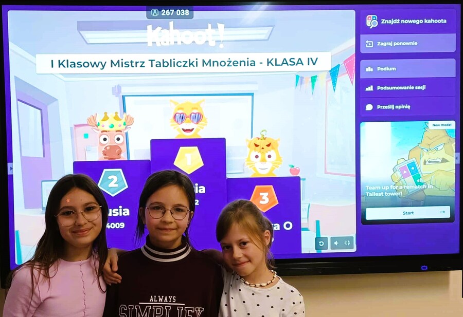 W minionym tygodniu w naszej szkole odbyła się IV edycja konkursu o tytuł Klasowego Mistrza Tabliczki Mnożenia. W każdej klasie zostały przeprowadzone rozgrywki z wykorzystaniem platformy edukacyjnej Kahoot!, która zapewniła zaangażowanie i zabawę wszystkim uczniom, bo wiadomo, że nauka poprzez zabawę przynosi najlepsze efekty.