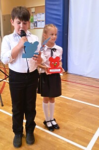 Z tej okazji uczniowie klas drugich przygotowali kolorowe niespodzianki z życzeniami pełnymi pomyślności. Ten miły gest ucieszył uczniów klas trzecich, a niektórych nawet wzruszył.
