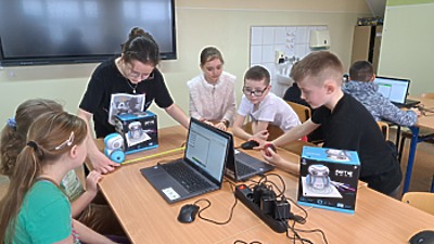 W lutym uczniowie klas trzecich uczestniczyli w zajęciach z robotyki. Roboty, z którymi pracowali pozyskane zostały przez szkołę w ramach projektu "Laboratoria przyszłości".