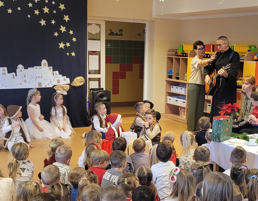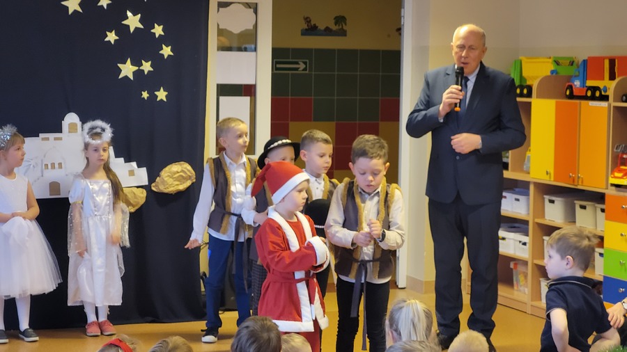 19 grudnia w Publicznym Przedszkolu Samorządowym w Trzcinicy odbyło się tradycyjne kolędowanie. Na przedświąteczne spotkanie zaproszenie przyjęli: wójt gminy Trzcinica – pan Grzegorz Hadzik, proboszcz naszej parafii – ks. kanonik Grzegorz Mituła, dyrektor Gminnej Biblioteki Publicznej – pani Renata a Gość, przedstawiciel Zarządu Gminnego OSP w Trzcinicy – pan Zbigniew Grześniak, przewodnicząca KGW w Trzcinicy – pani Maria Bryja, członkowie Rady Rodziców przedszkola oraz emerytowani nauczyciele przedszkola wraz z panią Małgorzatą Hadzik.