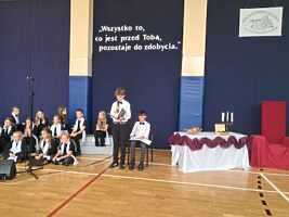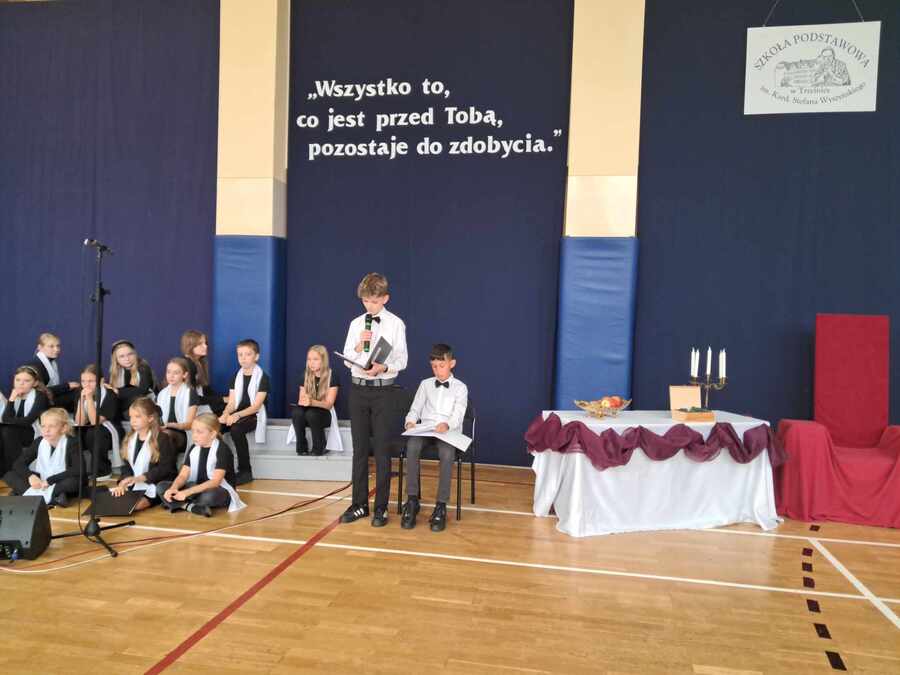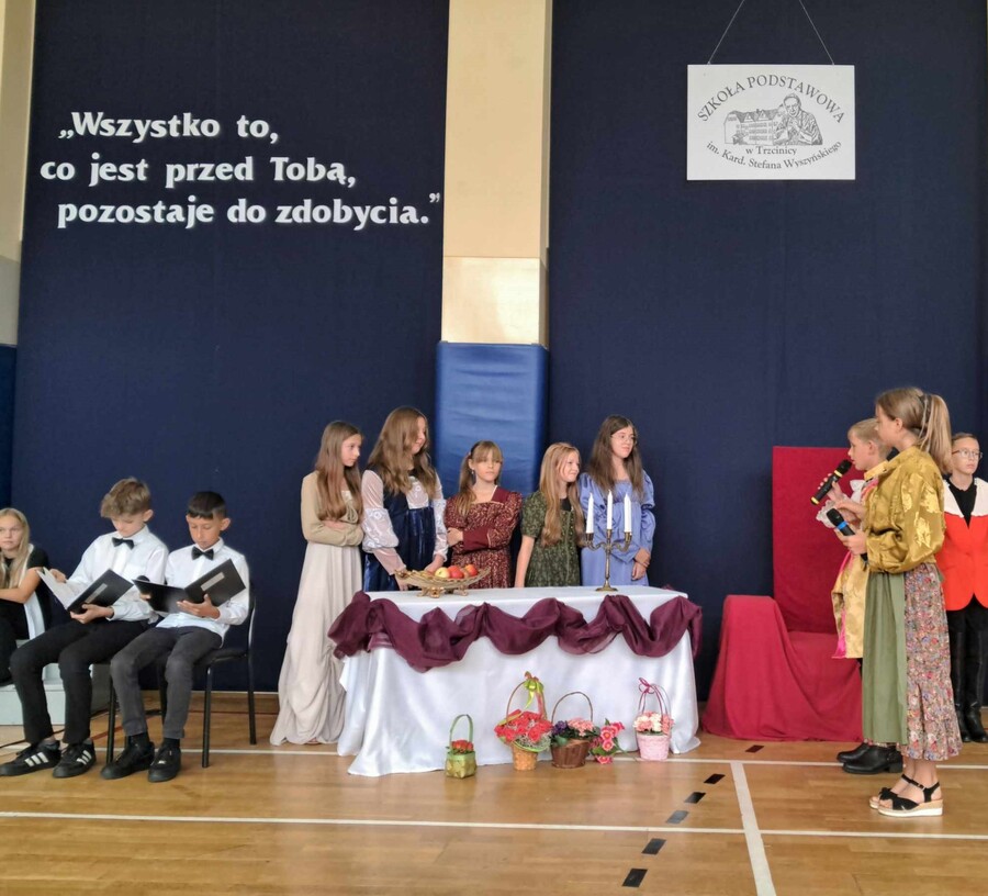 26 września jak co roku obchodziliśmy w naszej szkole rocznicę internowania Patrona naszej szkoły – bł. Kard. St. Wyszyńskiego. Apel organizowany z tej okazji zawsze poświęcamy wartościom jakimi w życiu kierował się Patron naszej szkoły. Uroczystość przygotowali uczniowie klasy V, którym towarzyszył Chór Szkoły Podstawowej w Trzcinicy NUTKA pod kierunkiem pani Renaty Adamskiej-Garbowskiej.
