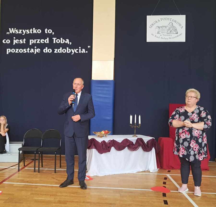 W wydarzeniu wzięli udział również zaproszeni goście: Wójt Gminy Trzcinica – pan Grzegorz Hadzik, Proboszcz parafii pw. św. St. Biskupa i Męczennika w Trzcinicy – ks. kanonik Grzegorz Mituła, pani Małgorzata Hadzik oraz Przewodnicząca Rady Rodziców – pani Karolina Ozdoba. Dyrektor szkoły – pani Ewa Hetmańczyk oraz zaproszeni goście odnieśli się do samej postaci bł. Kard. St. Wyszyńskiego jaki i do części artystycznej przygotowanej przez uczniów.
