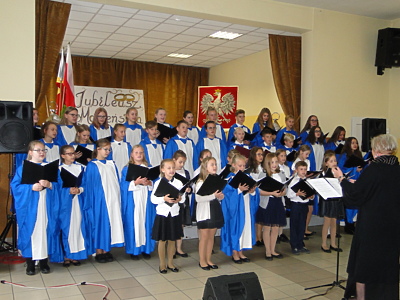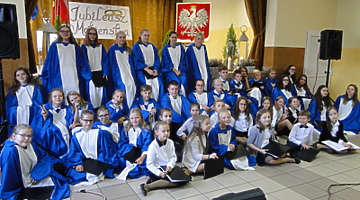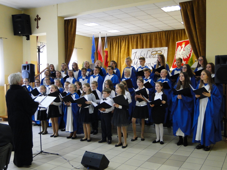 3 października 2018r. Chór Zespołu Szkół w Trzcinicy koncertował podczas niezwykłej uroczystości Jubileuszu Małżeństwa. Tego dnia kilkanaście par z terenu Gminy Trzcinica obchodziło swój jubileusz. To właśnie dla nich nasi chórzyści przygotowali specjalny repertuar, traktujący o życiu, trudach dnia codziennego, pokonywaniu problemów, ale przede wszystkim o tym, że życie jest piękne. Kończąc koncert chórzyści złożyli Jubilatom życzenia i odśpiewali tradycyjne „Sto lat”.