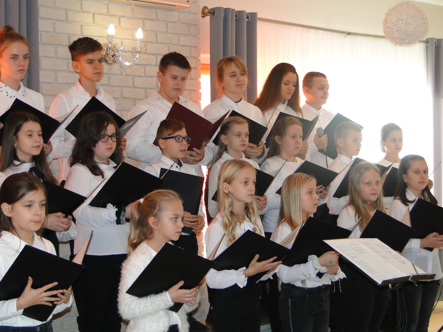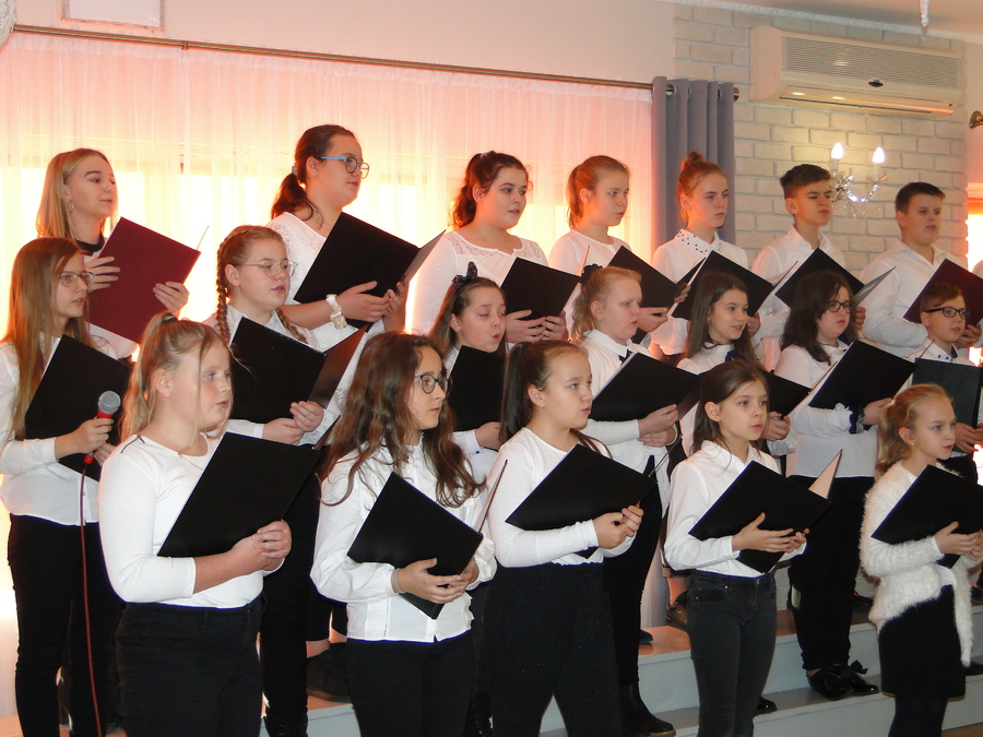5 grudnia 2019r. Chór Zespołu Szkół w Trzcinicy koncertował podczas uroczystości Jubileuszu Małżeństwa. Tego dnia kilkanaście par z terenu Gminy Trzcinica obchodziło swój jubileusz. Nasi chórzyści pod kierunkiem pani Renaty Adamskiej zaprezentowali kilka utworów. Na zakończenie złożyli Jubilatom życzenia.