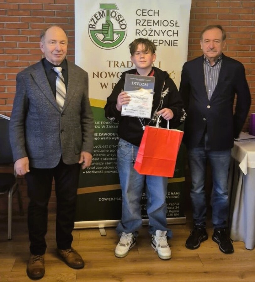Z przyjemnością informujemy o kolejnym sukcesie uczniów naszej szkoły. Marta Tyra z klasy VIIa zajęła - V miejsce, a Julian Maciejewski z klasy VIII - miejsce VII w konkursie „Wiedza o Zapomnianych Zawodach Rzemieślniczych”, organizowanego przez Cech Rzemiosł Różnych w Kępnie.