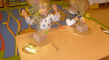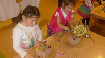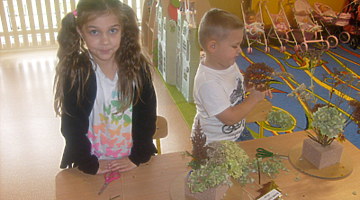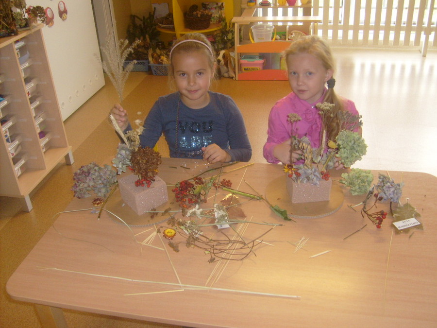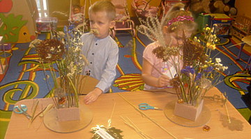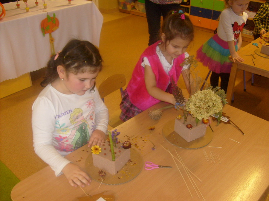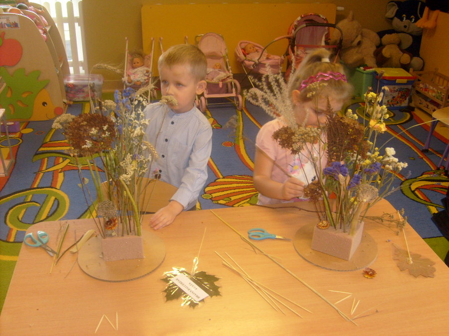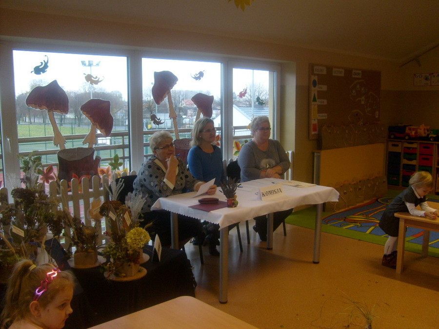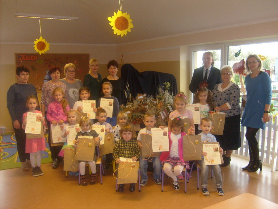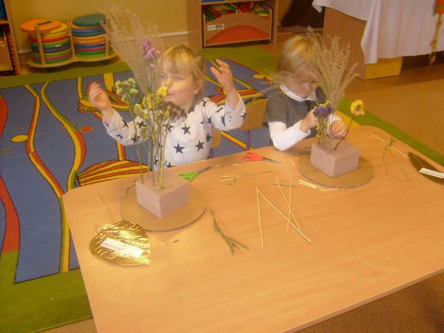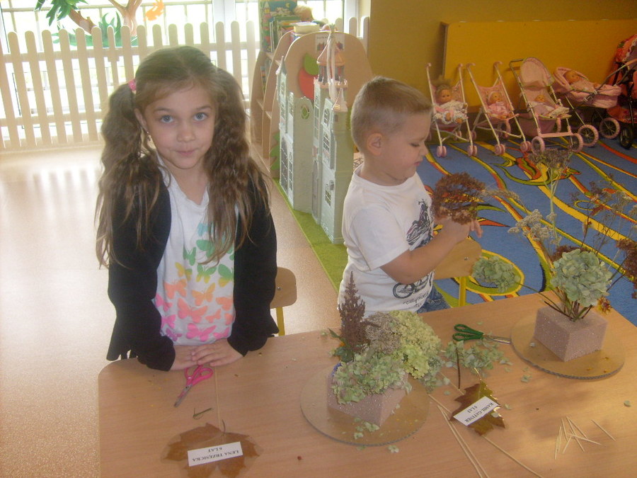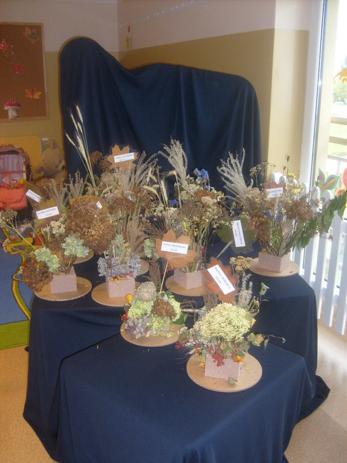 W tym roku dzieci zmierzyły się z tematem „Jesienny bukiet”. Konkurs przeprowadzony został w formie zajęcia. Nauczyciel prowadzący zademonstrował w jaki sposób tworzy się kompozycje, opowiedział dzieciom o przygotowanych roślinach i technice pracy, po czym zaprosił do działania. Uczestnicy dowolnie dobierali wysuszone wcześniej rośliny i układali je w gąbce. Dla wychowawców była to wspaniała okazja do zaobserwowania zachowań swoich podopiecznych, a te były wzorowe. Dzieci pomagały sobie, doradzały, przynosiły kwiaty i wspólnie sprzątały. Atmosfera pozwoliła całkowicie oddać się działaniom i stworzyć własne kompozycje, które po skończeniu każdy uczestnik ustawił na wyznaczonym miejscu. W ten sposób powstała niepowtarzalna wystawa.