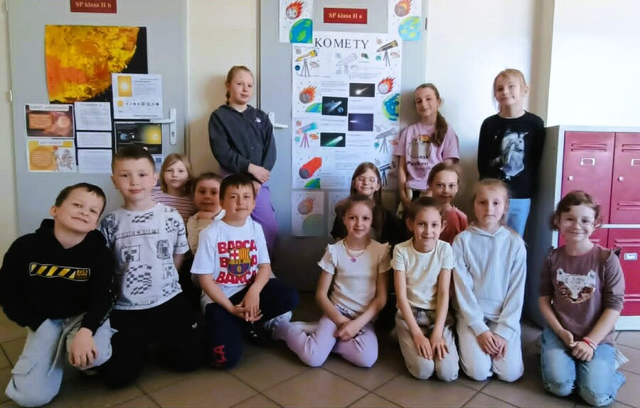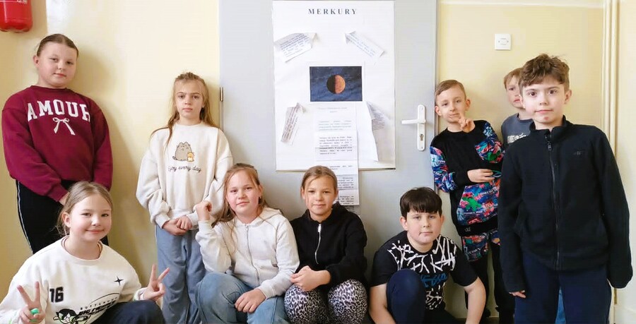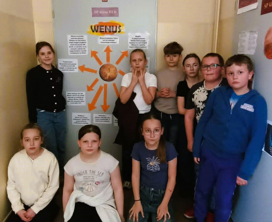 W ramach Tygodnia Przyrodniczego uczniowie wszystkich klas, od najmłodszych po najstarszych, wzięli udział w fascynującej, edukacyjnej podróży po Układzie Słonecznym, zamieniając korytarze w gwiezdną przestrzeń. Na drzwiach do klas umieścili zarówno swoje prace związane z ciałami niebieskimi jak i piękne zdjęcia i ciekawe informacje.