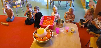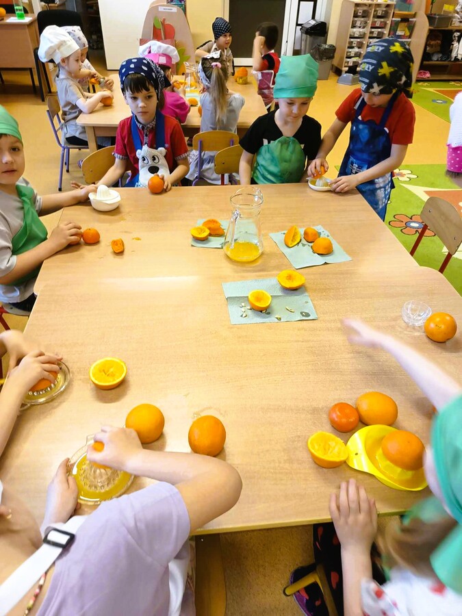 Ze względu na realizowaną tematykę dotyczącą zdrowego żywienia, dzieci z grup: „Krasnoludki” i „Smoki Dinusie”, z pomocą swoich pań wykonały zdrowy sok.