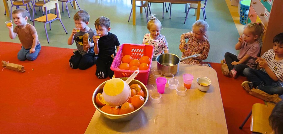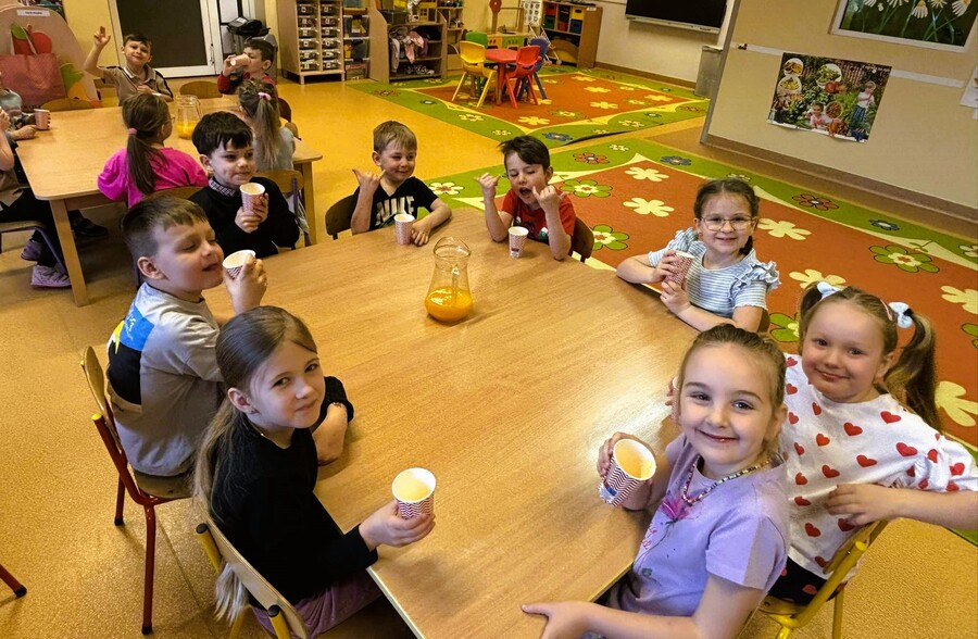 W czasie kulinarnej dyskusji przedszkolaki doszły do wniosku, że w okresie świętowania taki napój równie dodrze smakowałby dzieciom, jak i innym członkom rodziny.